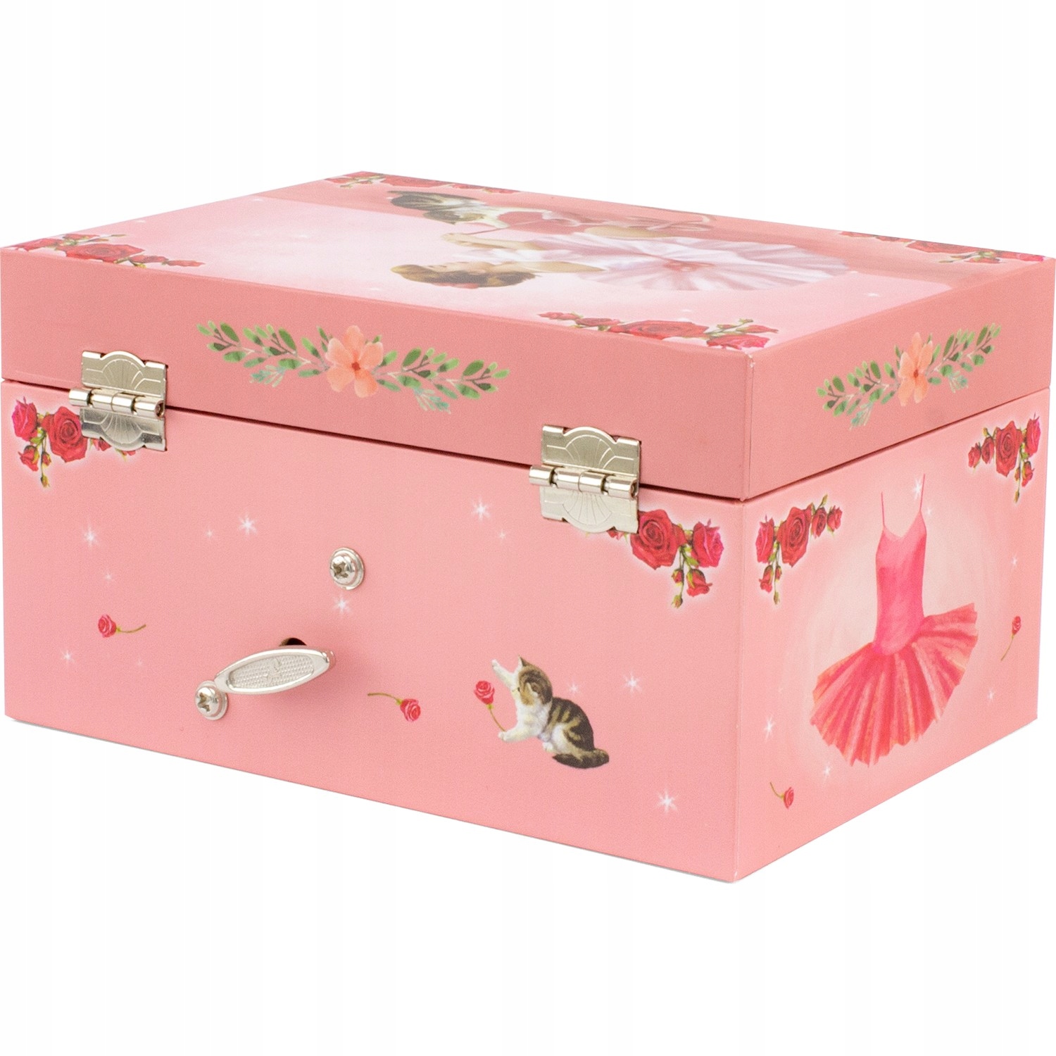 Красива коробка ювелірних виробів, коробка з музичною коробкою французького виробника ulsse вражає надзвичайним виглядом, кольорами та ретельними продуктивністю. коробка ювелірних виробів на кришці якої - зображення балерини з кошенят. Після відкриття кришки шкатулки та раніше намотування механізму музичної коробки всередині, маленький танцюрист починає крутитися в музиці "Вальс квітів - Лускунчик" Піор Чайковський.