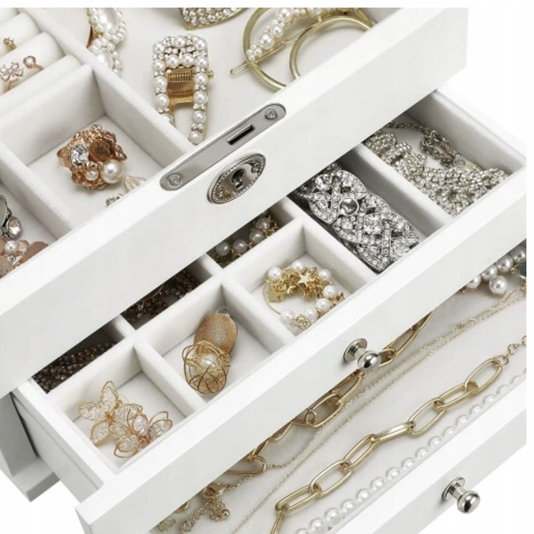 рівнів та багато відділень - для сережок, кілець, браслетів, кольє ... все в ідеальному порядку! 🧁📿🔑 Закрито ключовим - ювелірні таємниці вашої принцеси будуть безпечними! 🔐✨