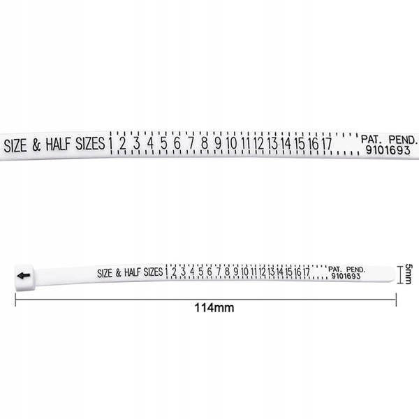 Ювелірна лінійка для вимірювання розміру каблучки. Дуже простий у використанні, оснащений чітким мірником (1-17 см) для зчитування результату вимірювання. Правильний розмір каблучки визначається множенням результату вимірювання на 2, наприклад: 7x2=14, а 14 — розмір
