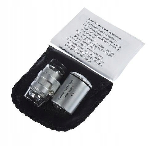 Зручна кишенькова лупа (мікроскоп) із 45-кратним збільшенням. Має 3 вбудовані світлодіоди. Він дуже легкий і неймовірно зручний. Його можна використовувати в електроніці, ювелірній справі, моделюванні та скрізь, де потрібна точність і точність. Поставляється з елегантним футляром.