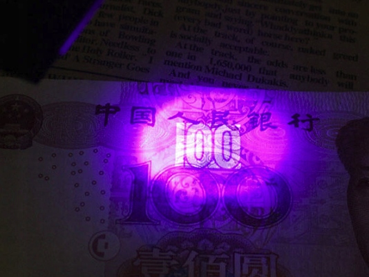 Крім того, лупа має діод, що випромінює ультрафіолетове світло, завдяки якому можна перевірити справжність банкнот.