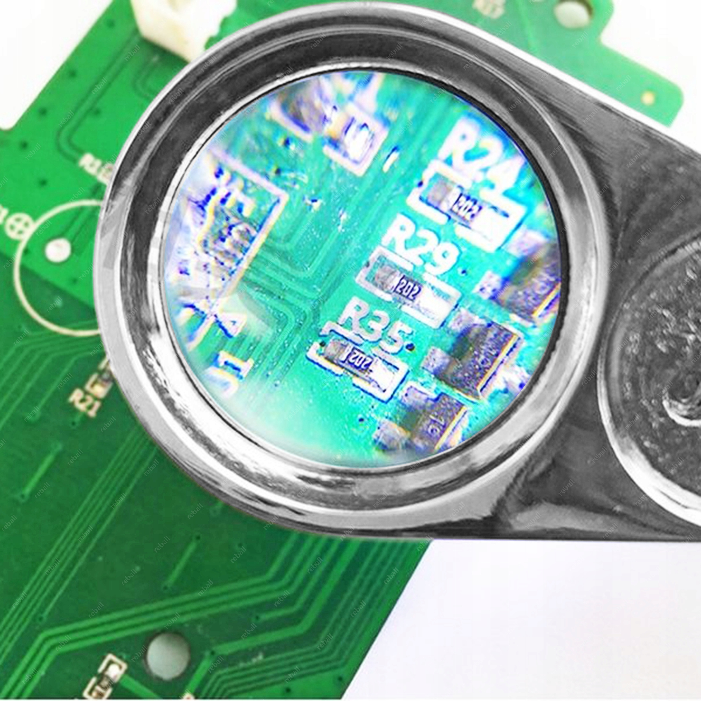 Збільшувальне скло має дві світлодіодні лампи, розміщені на зовнішній стороні панелі. Освітлення настільки сильне та інтенсивне, що неможливо нічого пропустити.