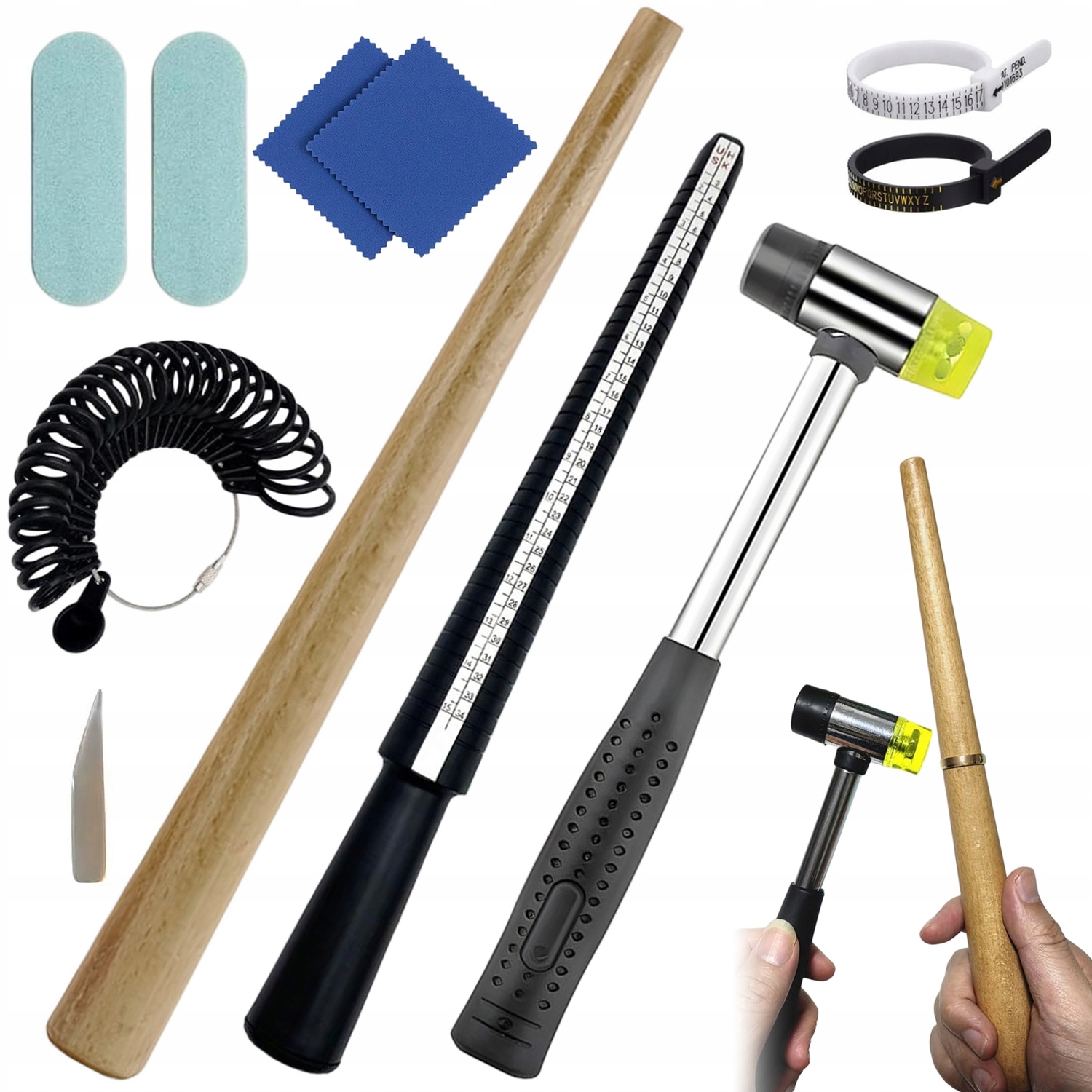 💍 Набір для вимірювання розміру каблучки з 11 предметів із гумовим молотком для вимірювання металевих ювелірних виробів для жінок і чоловіків