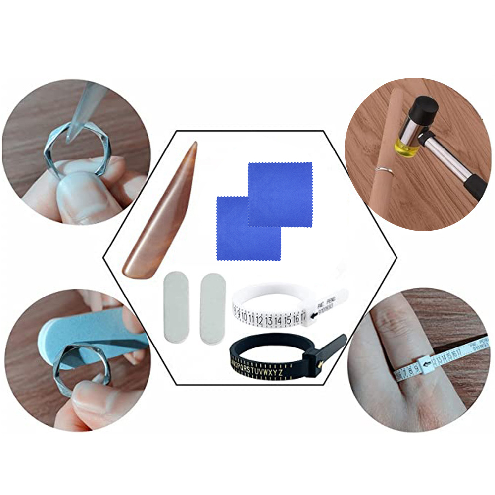 ✔️ Цей набір інструментів для виготовлення шпильок включає 11 інструментів, включаючи 1 гумовий ювелірний молоток, 2 полірувальні тканини, 2 полірувальні стрижні, 1 полірований агат, 2 вимірювальні пальці, 1 полірувальний інструмент для ремонту кілець, 1 каблучку булавка та 1 набір моделей кола з 27 частин.