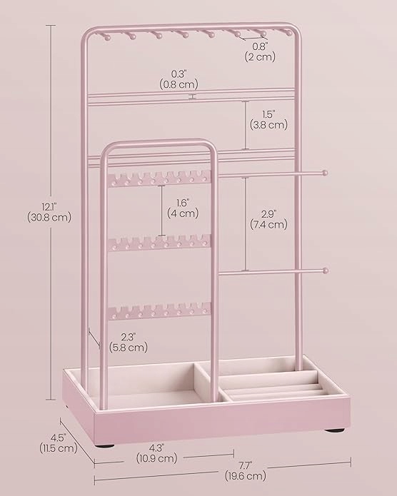 ідеально підходить для зберігання кольє, браслетів, сережок та багатьох інших аксесуарів. Завдяки двом незалежним стендам з відстані 5,8 см, ювелірні вироби залишаються упорядкованими і не заплутаються, що економить місце на столі.