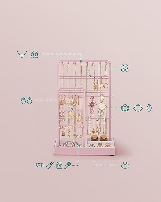 ювелірні підставки, організатор ювелірних виробів, ювелірні підставки, ювелірні підставки, сережки, кільця, ідея подарунка, рожевий