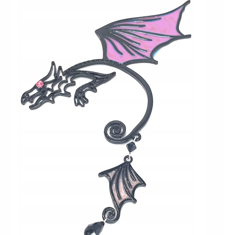 ЮВЕЛІРНА СЕРЕЖКА ДЕКОР НА ЛІВЕ ВУХО, РОЖЕВИЙ ДРАКОН