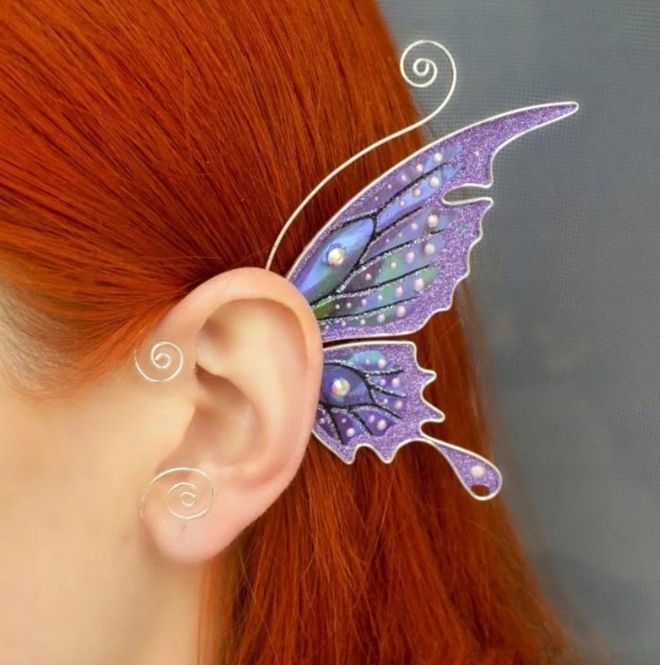 ЮВЕЛІРНА СЕРЕЖКА ДЕКОРАЦІЯ НА ЛІВЕ ВУХО МЕТЕЛИК ФІОЛЕТОВИЙ