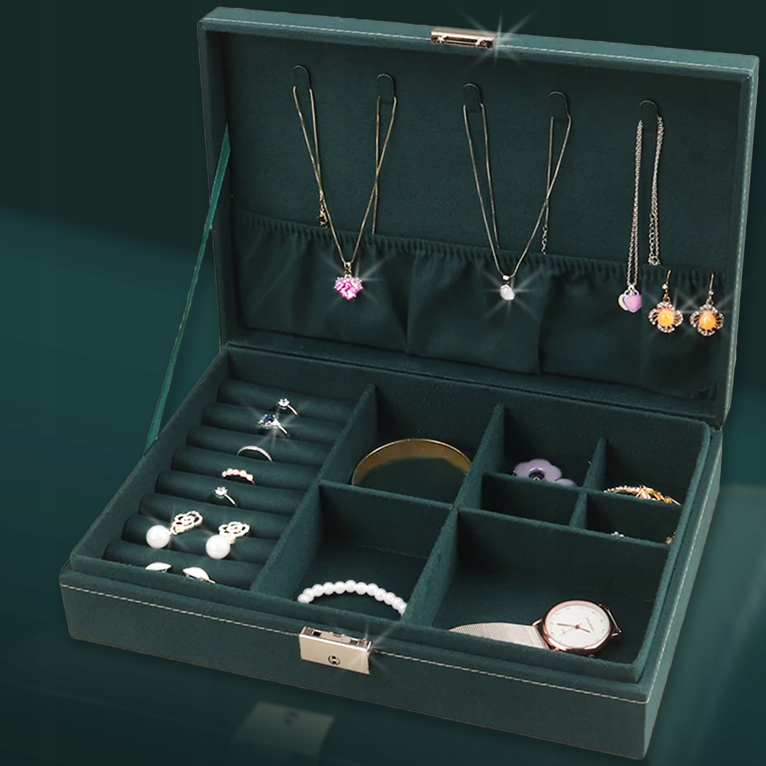 - Шкатулка для коштовностей із численними відділеннями — ідеальне рішення для людей, які цінують порядок і хочуть мати всі свої скарби під рукою.