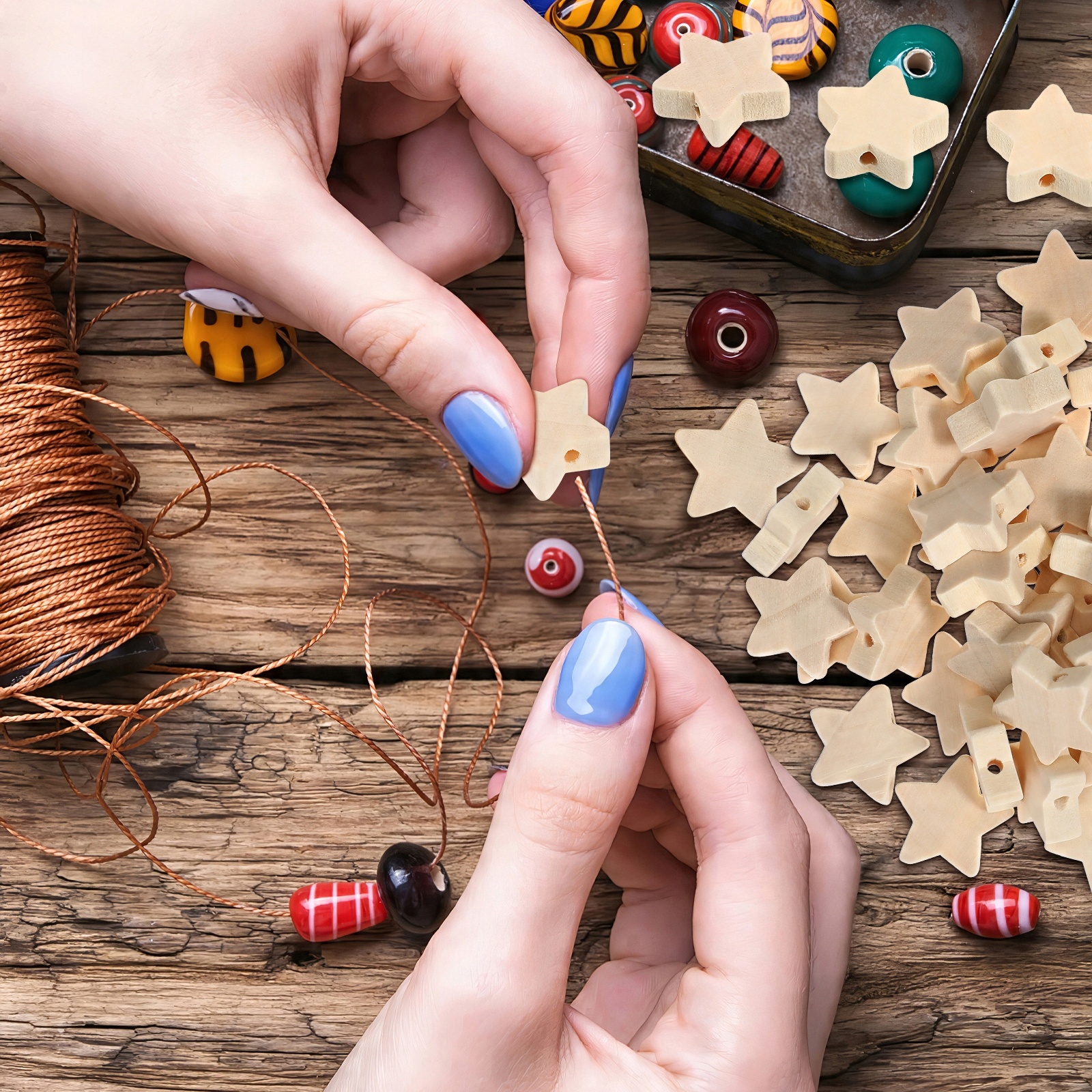 ✅Простий у використанні: дерев’яні намистини у формі зірки мають отвори в середині, які можна зафіксувати мотузкою.