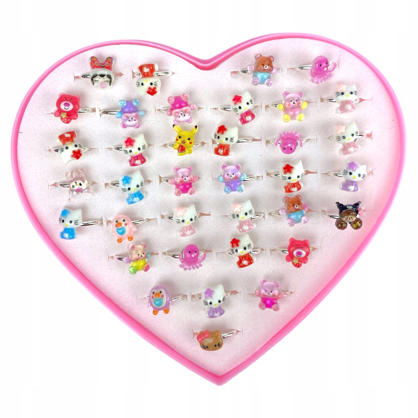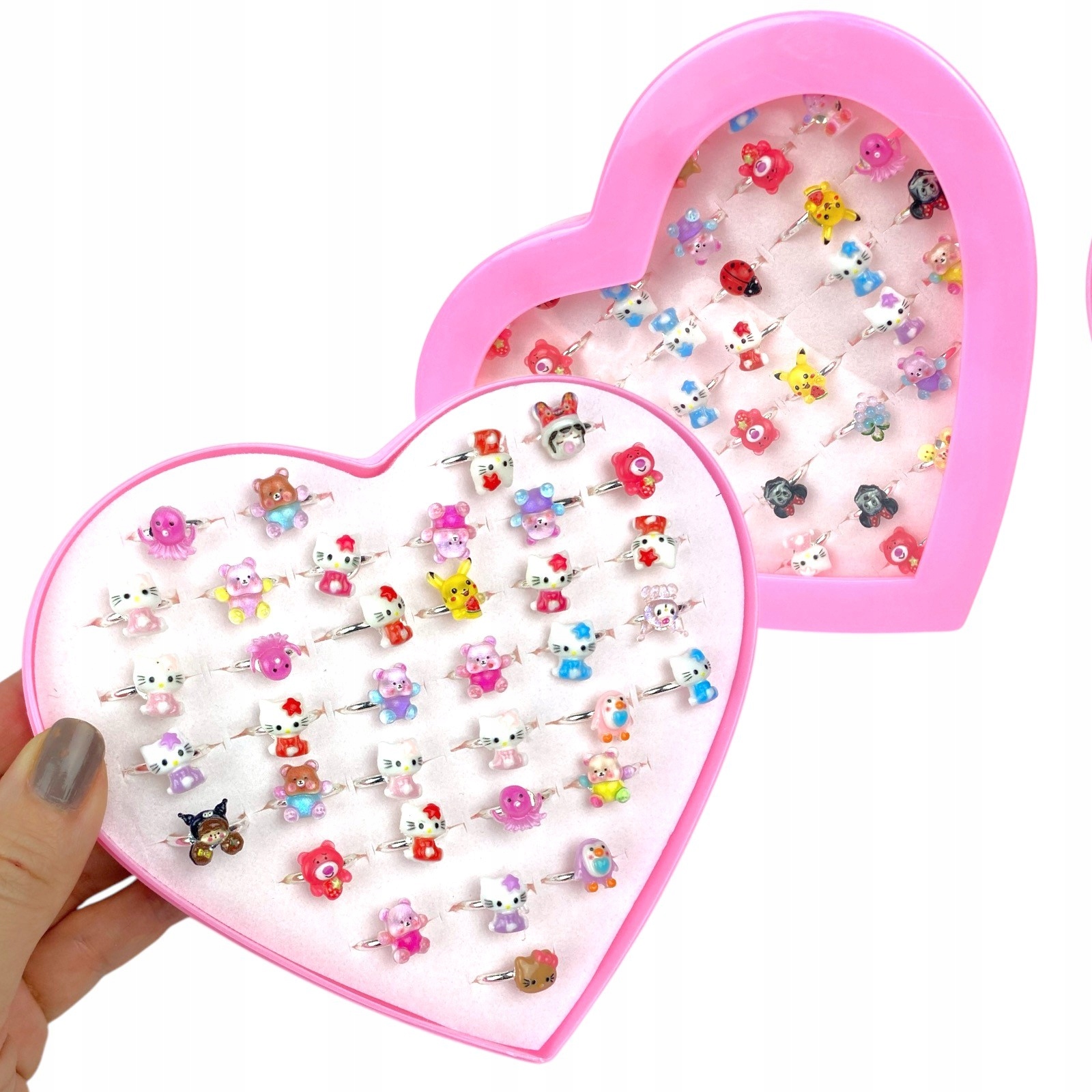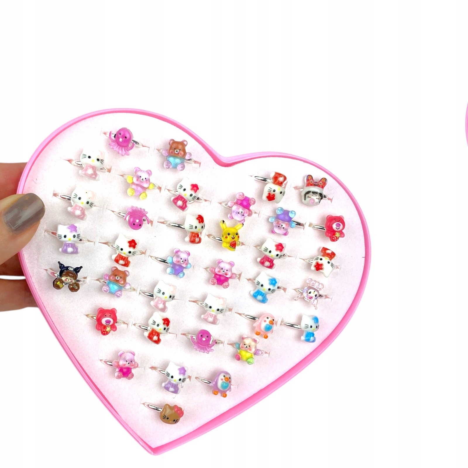 Порадуйте свою маленьку модницю цим чарівним набором кілець! У набір входить 36 регульованих кілець, кожне з яких прикрашене різноманітними барвистими візерунками, такими як тварини, персонажі, квіти та серця. Кільця витончені, легкі та ідеально лягають на дитячі руки завдяки регульованому розміру.