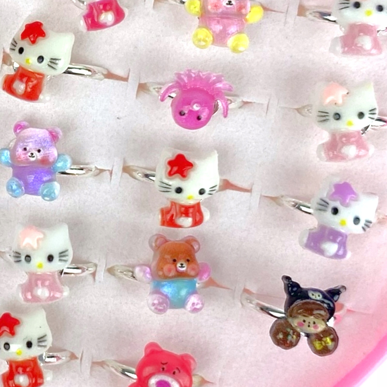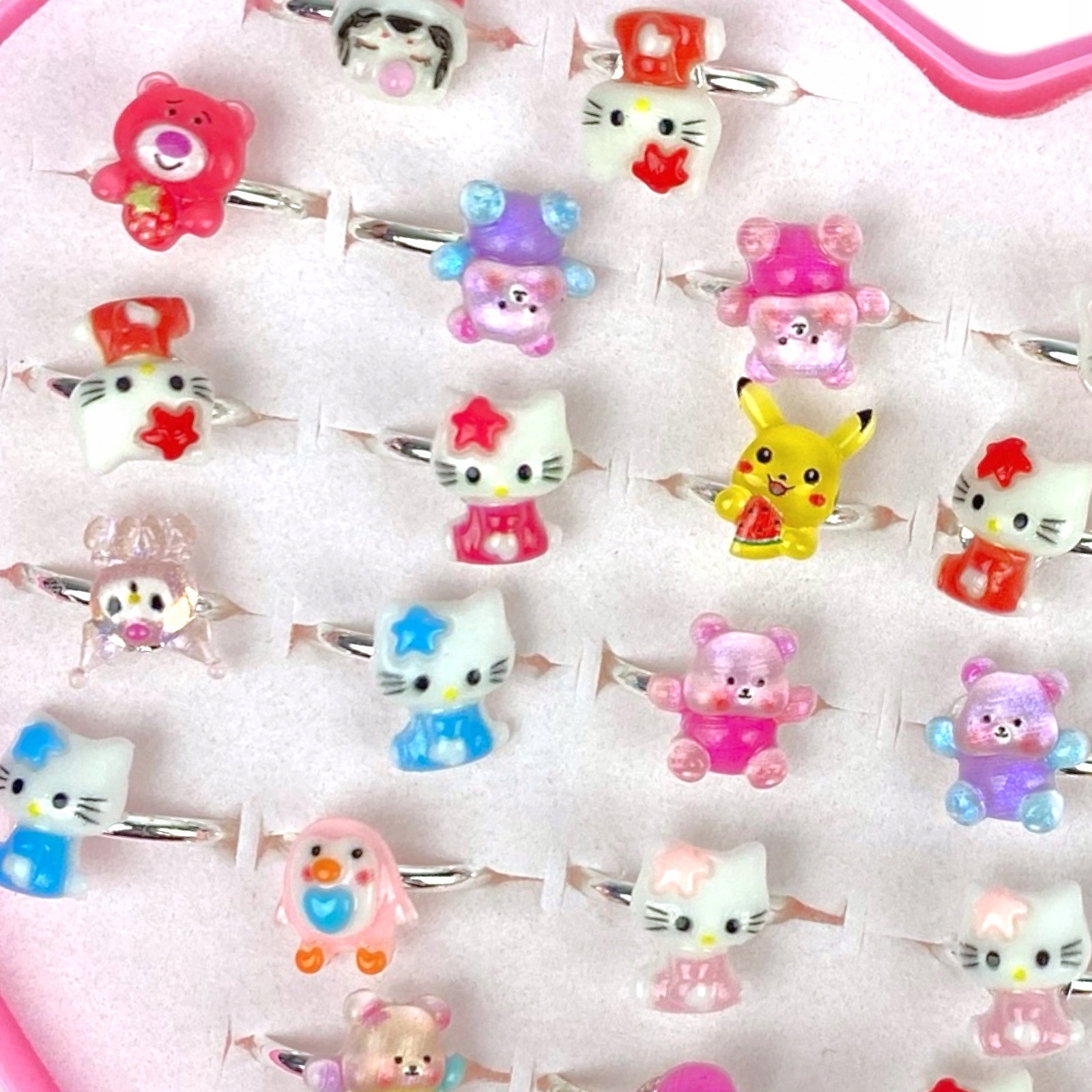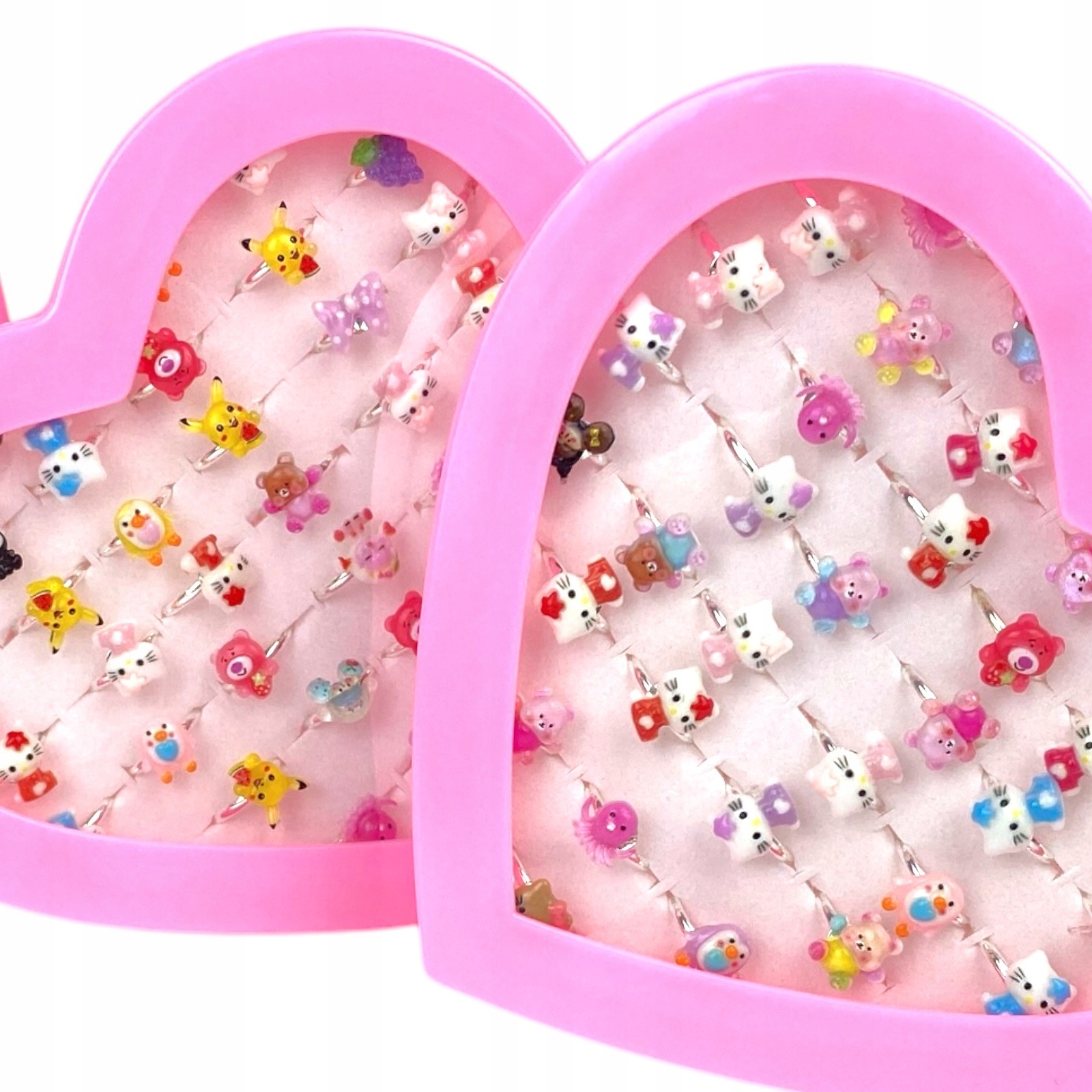 Порадуйте свою маленьку модницю цим чарівним набором кілець! У набір входить 36 регульованих кілець, кожне з яких прикрашене різноманітними барвистими візерунками, такими як тварини, персонажі, квіти та серця. Кільця витончені, легкі та ідеально лягають на дитячі руки завдяки регульованому розміру.