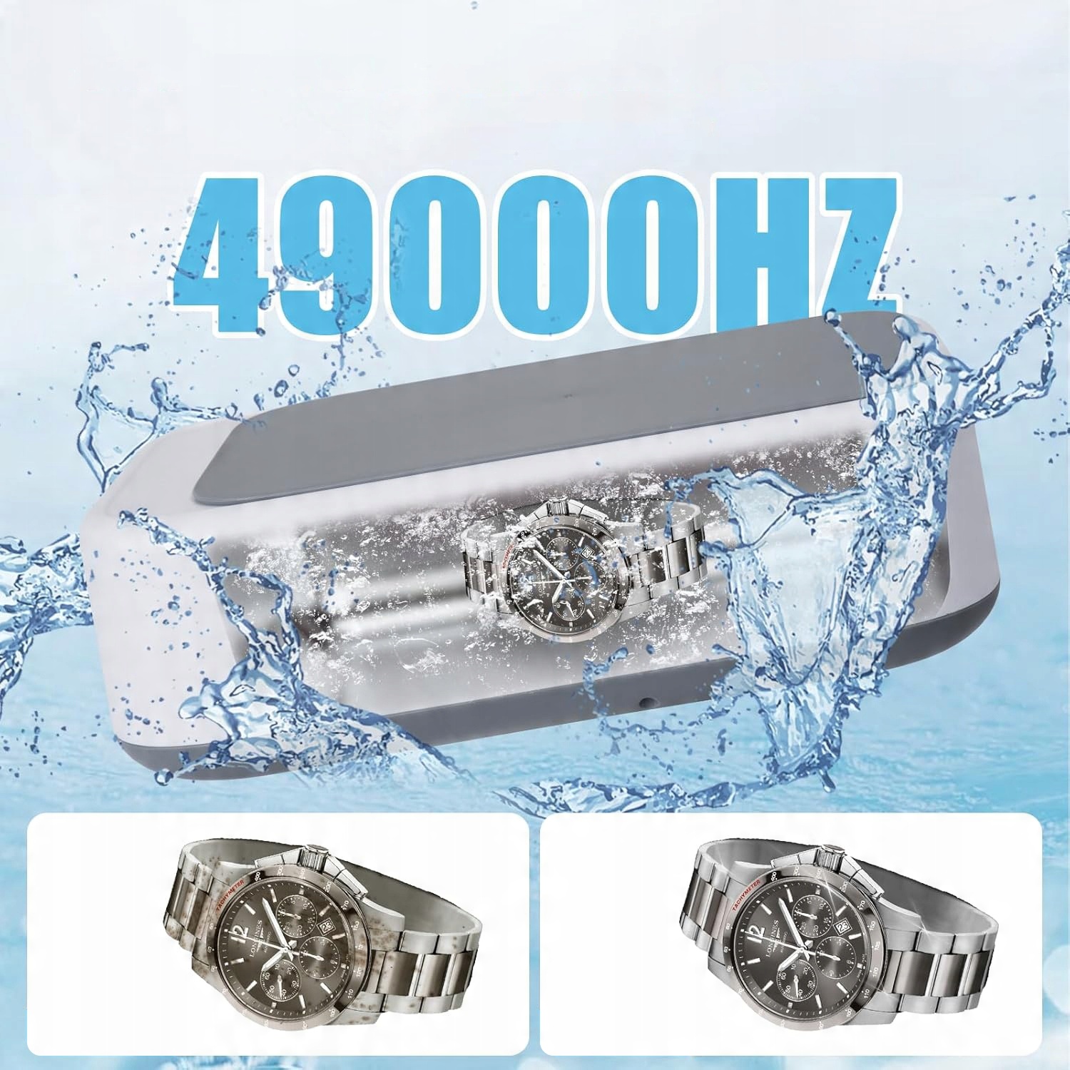 - Цей ультразвуковий пристрій має потужність 640 мл і Може чистити намисто, кільця, сережки, окуляри, водонепроникні годинники, бритви, зубні щітки, протези, поради для ручок, друкарські головки, ущільнювачі, металеві аксесуари, посуд з металевих, сосків, приладдя для макіяжу, невеликі іграшки для дітей тощо