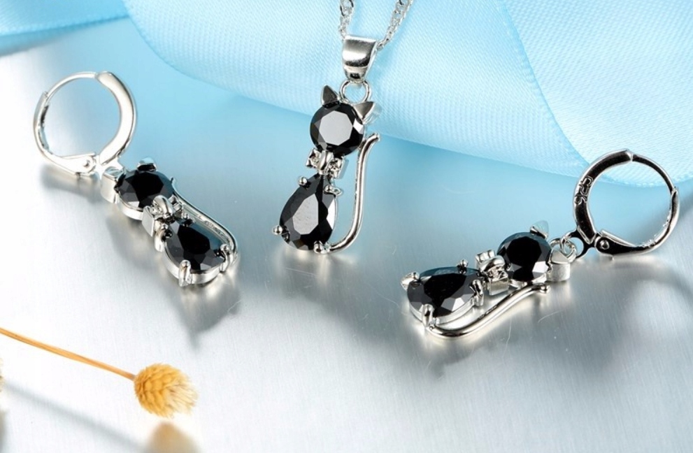 Ювелірний комплект Cat Cat 925 Cyroconie Black Set