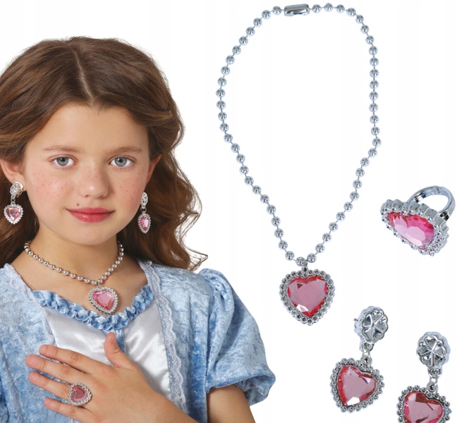 Підкресліть елегантність кожної маленької принцеси за допомогою нашого комплекту прикрас! У цей красивий набір входить кольє, сережки-кліпси і каблучка, прикрашені рожевими пластиковими «діамантами». Ідеально підходить для костюмованої вечірки, тематичної вечірки чи повсякденних розваг, набір додає блиску будь-якому стилю.