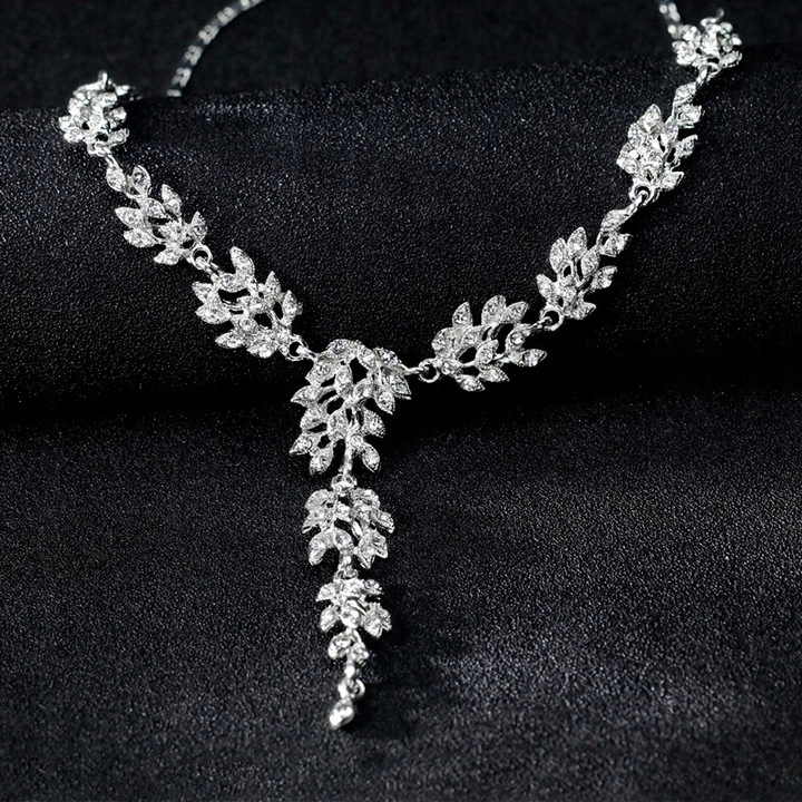 ЮВЕЛІРНИЙ НАБІР намисто з листочками цирконію. ВЕЧІРНІ ВЕСІЛЬНІ ПРИКРАСИ