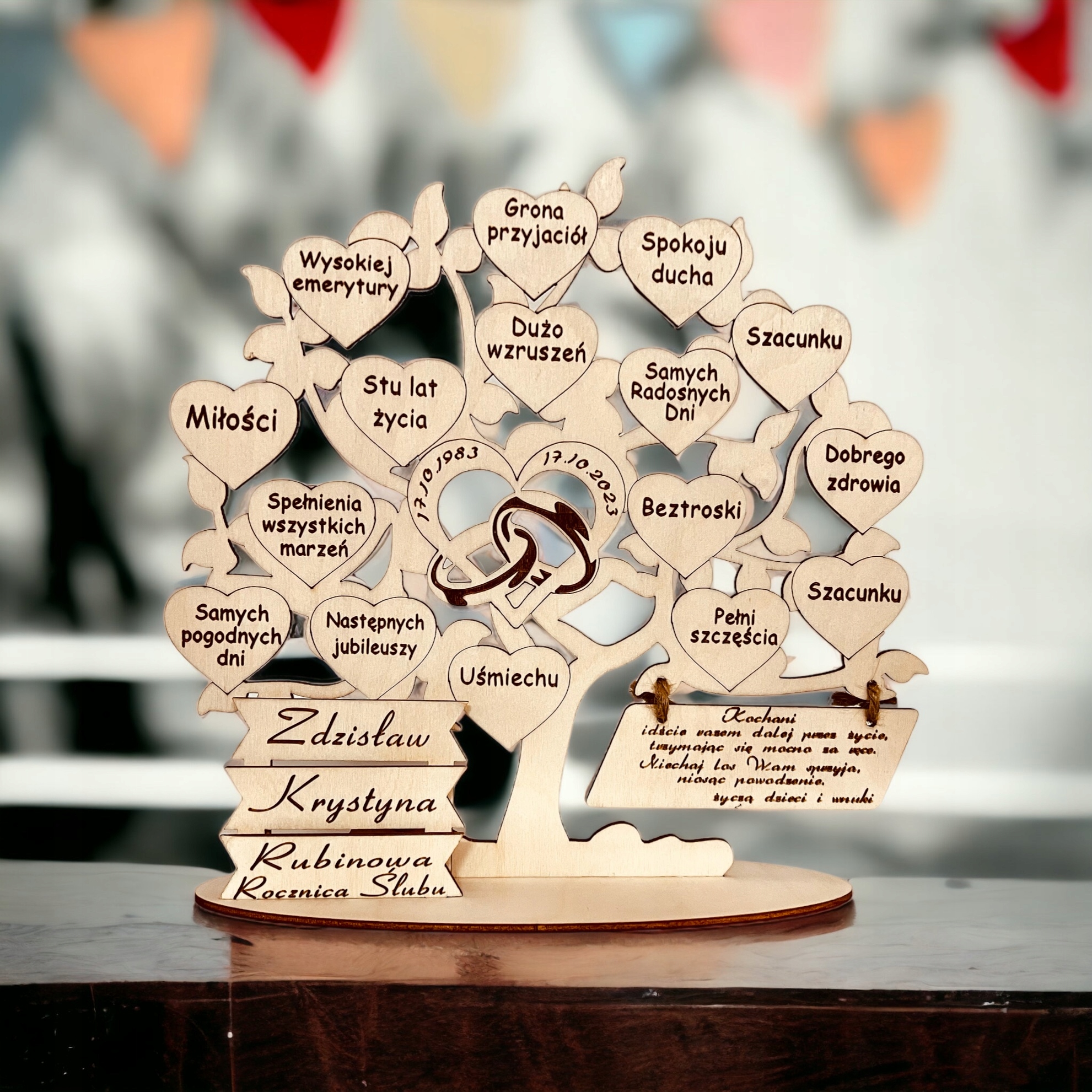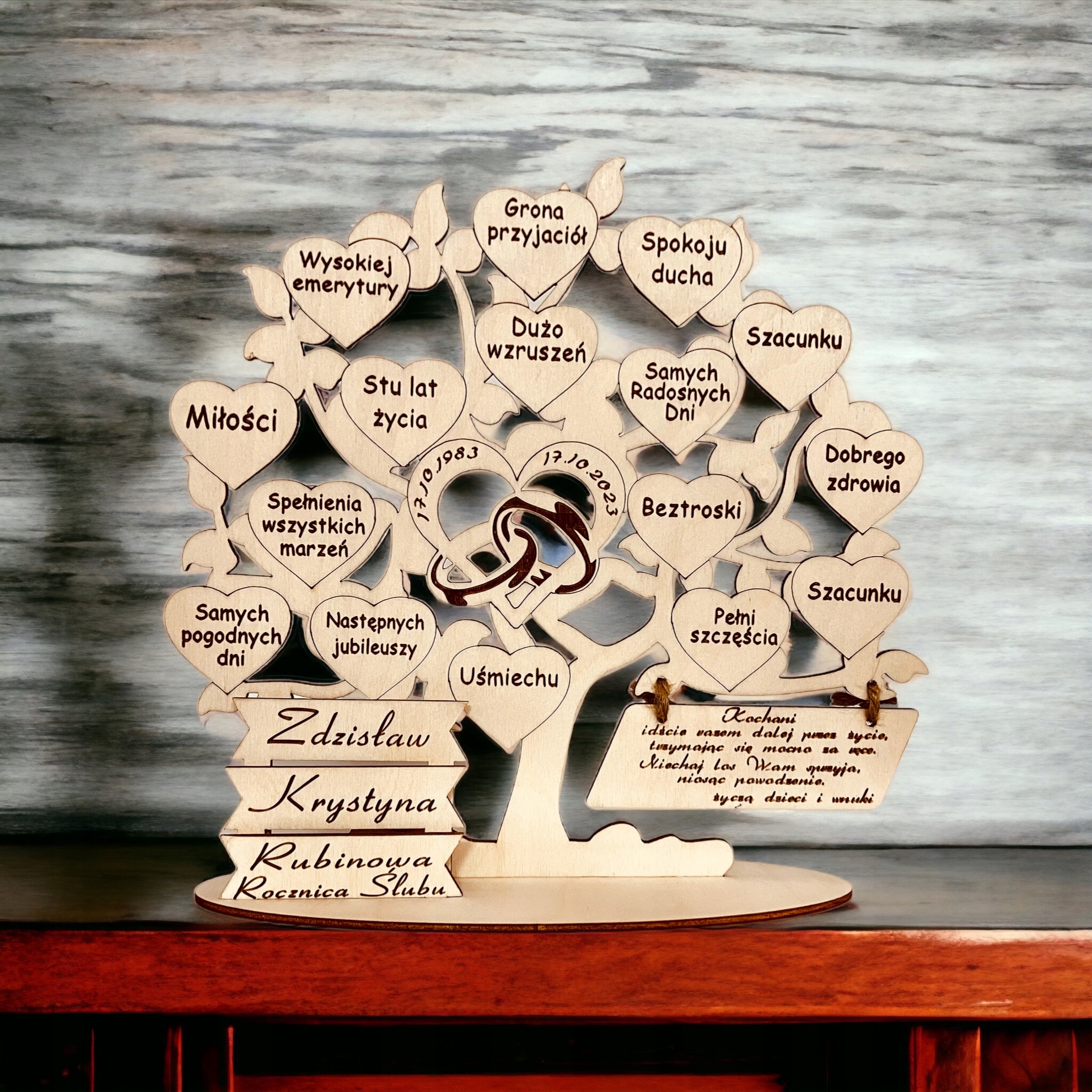 Ювілей весілля, дерево з гравіюванням - ручна робота