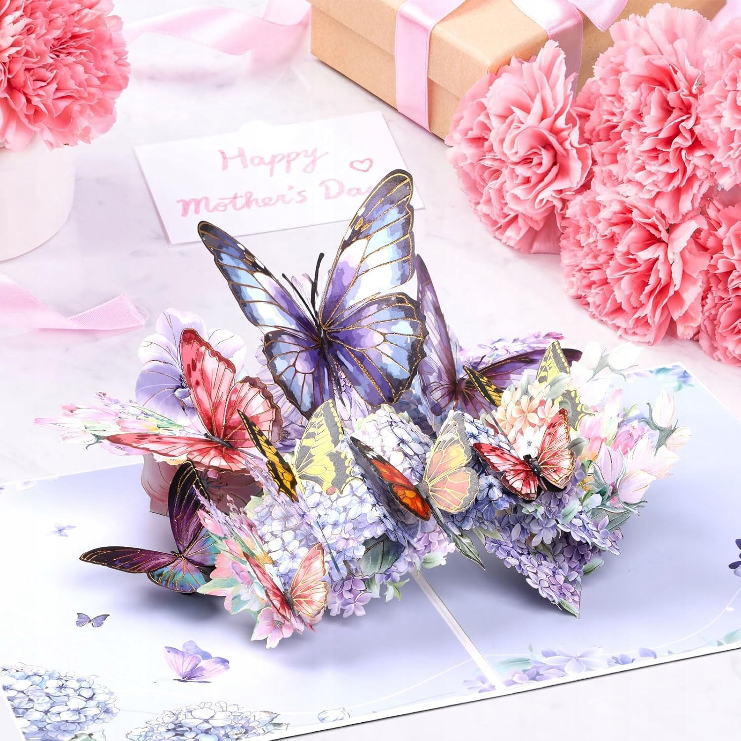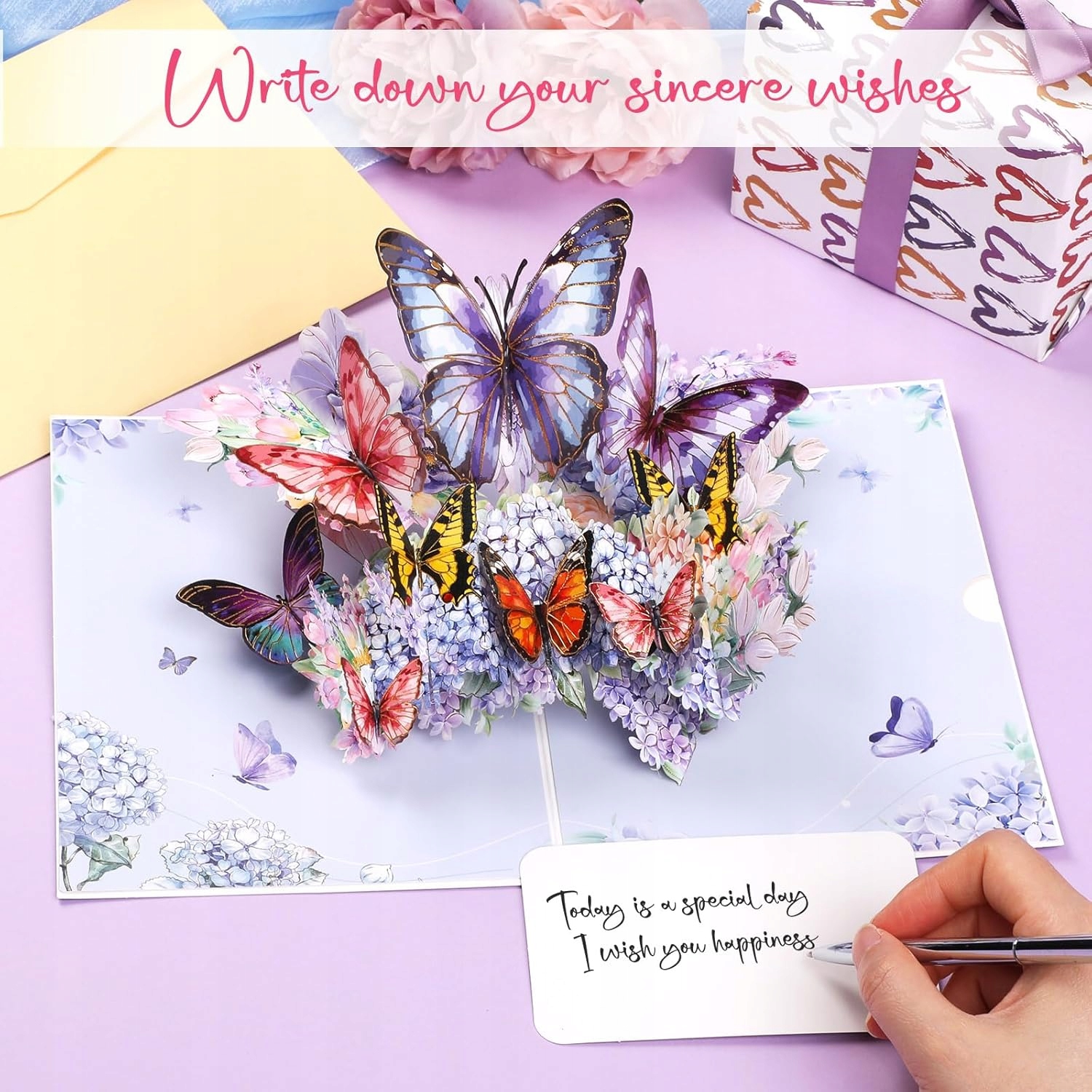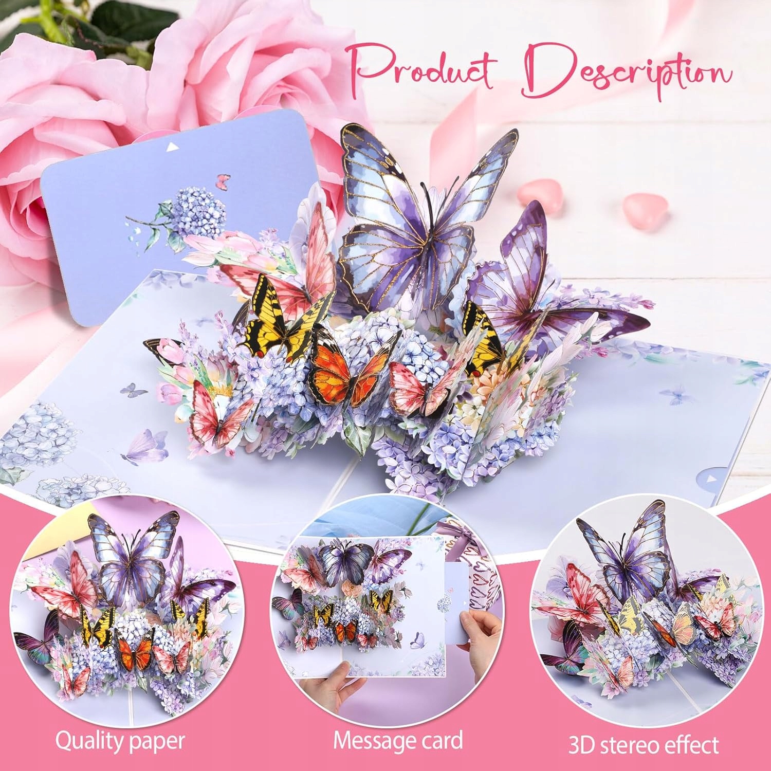 ① Вітальна листівка з ювілеєм, 3D-спливаюча листівка, метелики, квіти, красиві вітальні листівки з конвертом для друзів, закоханих, батьків, на день народження, весілля, різдво, свята