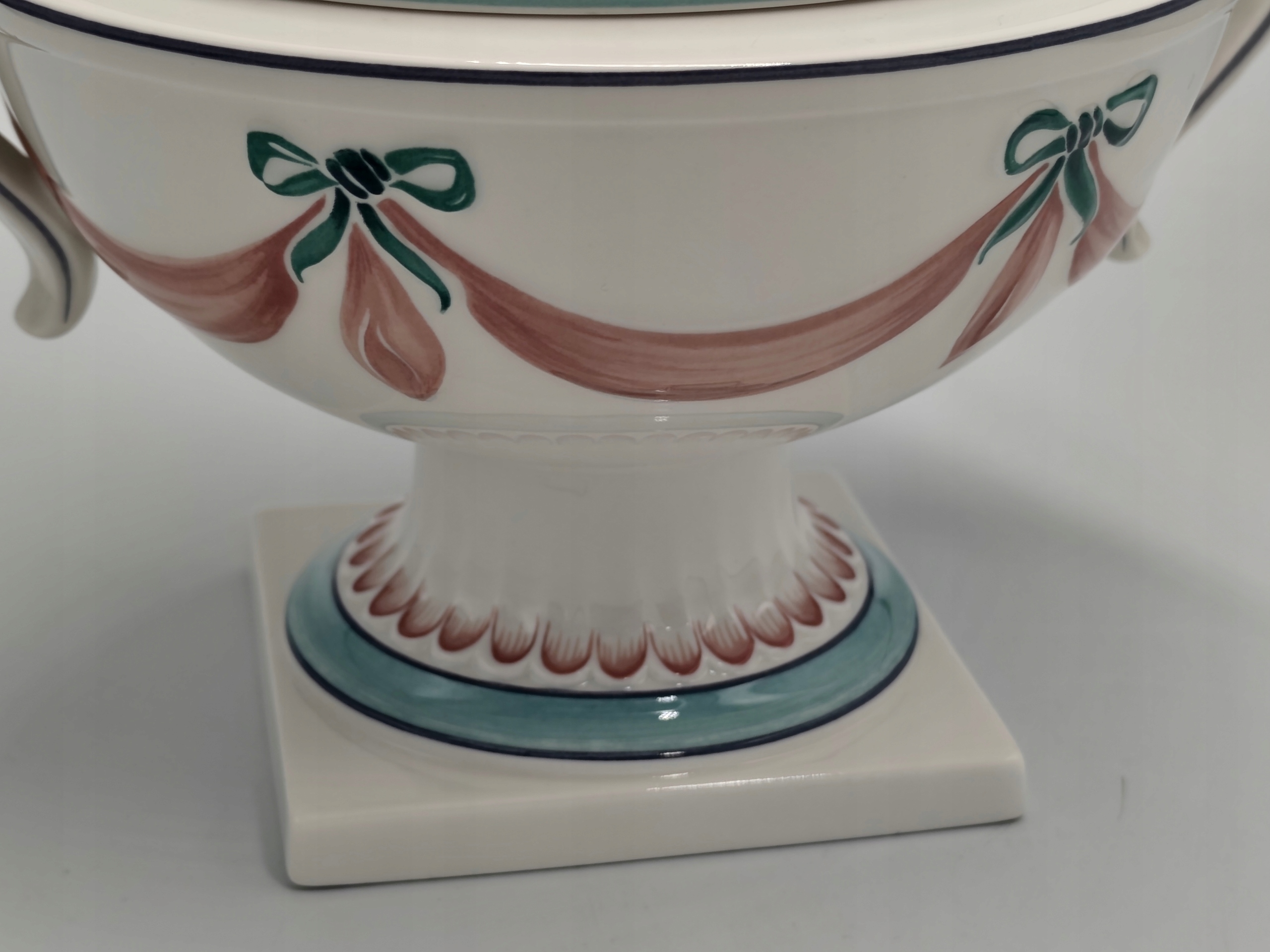 Ваза з порцеляни найвищої якості, прикрашена красивими стрічками, упакована в оригінальну коробку з сертифікатом автентичності. Підпис внизу.