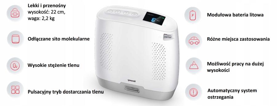 Портативний кисневий концентратор SPIRIT-3 - це компактний і ефективний продукт медичного пристрою, який дозволяє пацієнтам із проблемами дихання зручно та надійно отримувати кисень. Кисневий концентратор - це пристрій, призначений для кисневої терапії, яка передбачає забезпечення організму концентрованою кількістю газоподібного кисню, необхідного для нормального функціонування. Кисневий концентратор використовується для ефективного лікування гіпоксії, яка виникає при багатьох захворюваннях. Забезпечує високу концентрацію кисню під час домашньої терапії.