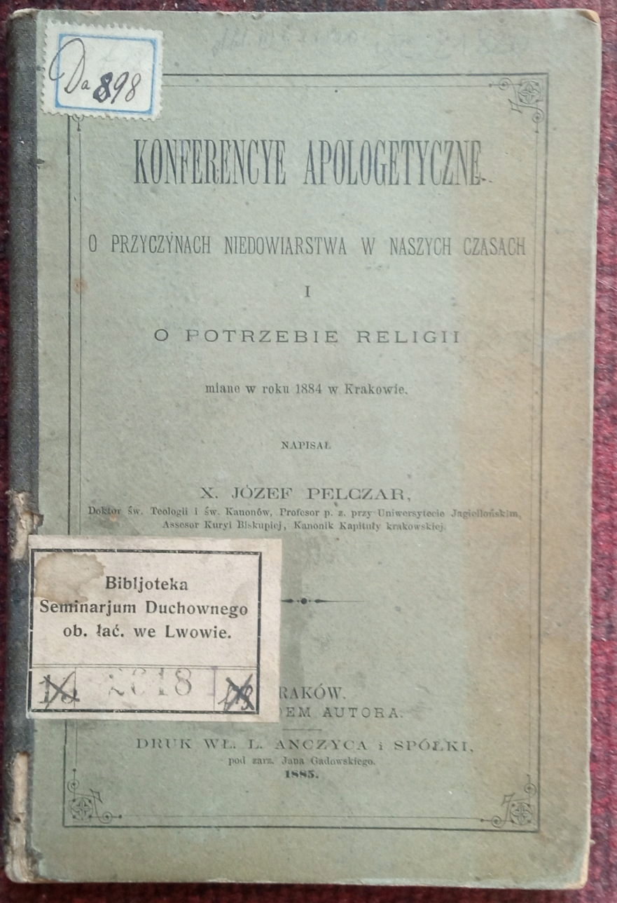 Просматривая «Юзеф Пельчар АПОЛОГЕТИЧЕСКИЕ КОНФЕРЕНЦИИ 1885 г.» данный товар из каталога «Религия» вы можете быть уверены, что после оформления заказа, доставки в Украину, вы получите именно то, что заказывали, в оговоренные сроки и европейского качества.