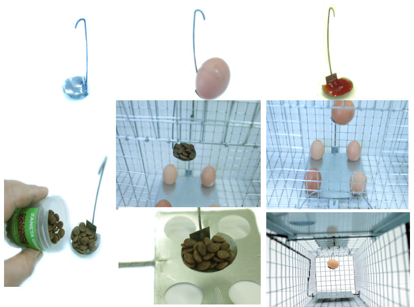 можна завантажити від 1 до 4 яєць одразу !!! Яєчна розетка - просто додайте кілька яєць, щоб створити враження гнізда, повного яєць. Тварини беруть на себе. Досить витягнути кутове яйце, щоб весь падав і торкнувся механізму тригера і закрив пастку.