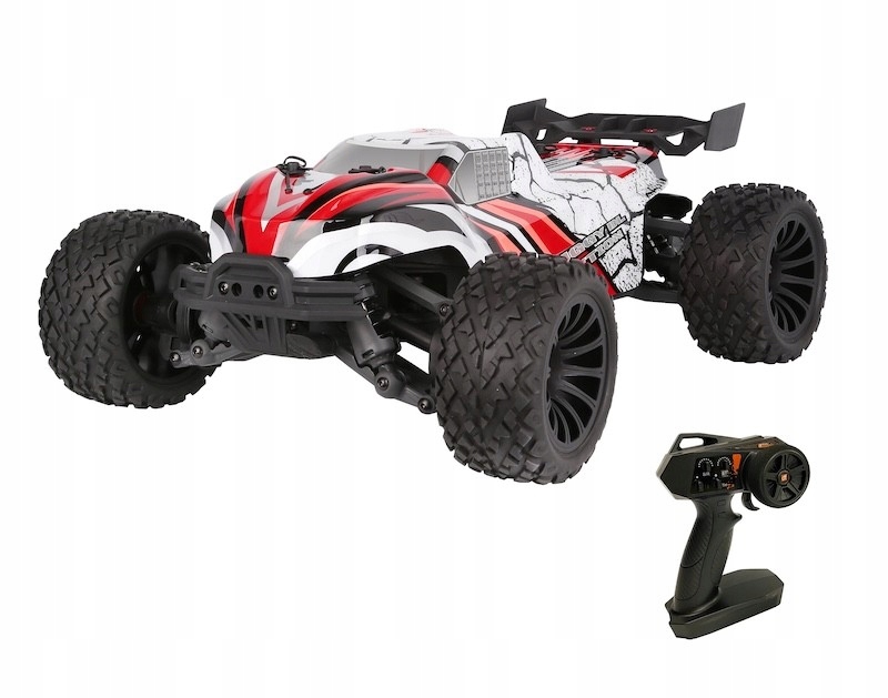 Можливість живлення від LiPo акумуляторів 2S, 3S або 4S (не входять в комплект). Для 4S використання встановленого коліщатка є обов’язковим для контролю величезної потужності. Шасі з високими бортами обмежує доступ бруду, і в стандартній комплектації ви знайдете: повний привід, сталеві диференціали, масляні амортизатори XXL, 17-міліметрові кріплення коліс і колісна дуга.