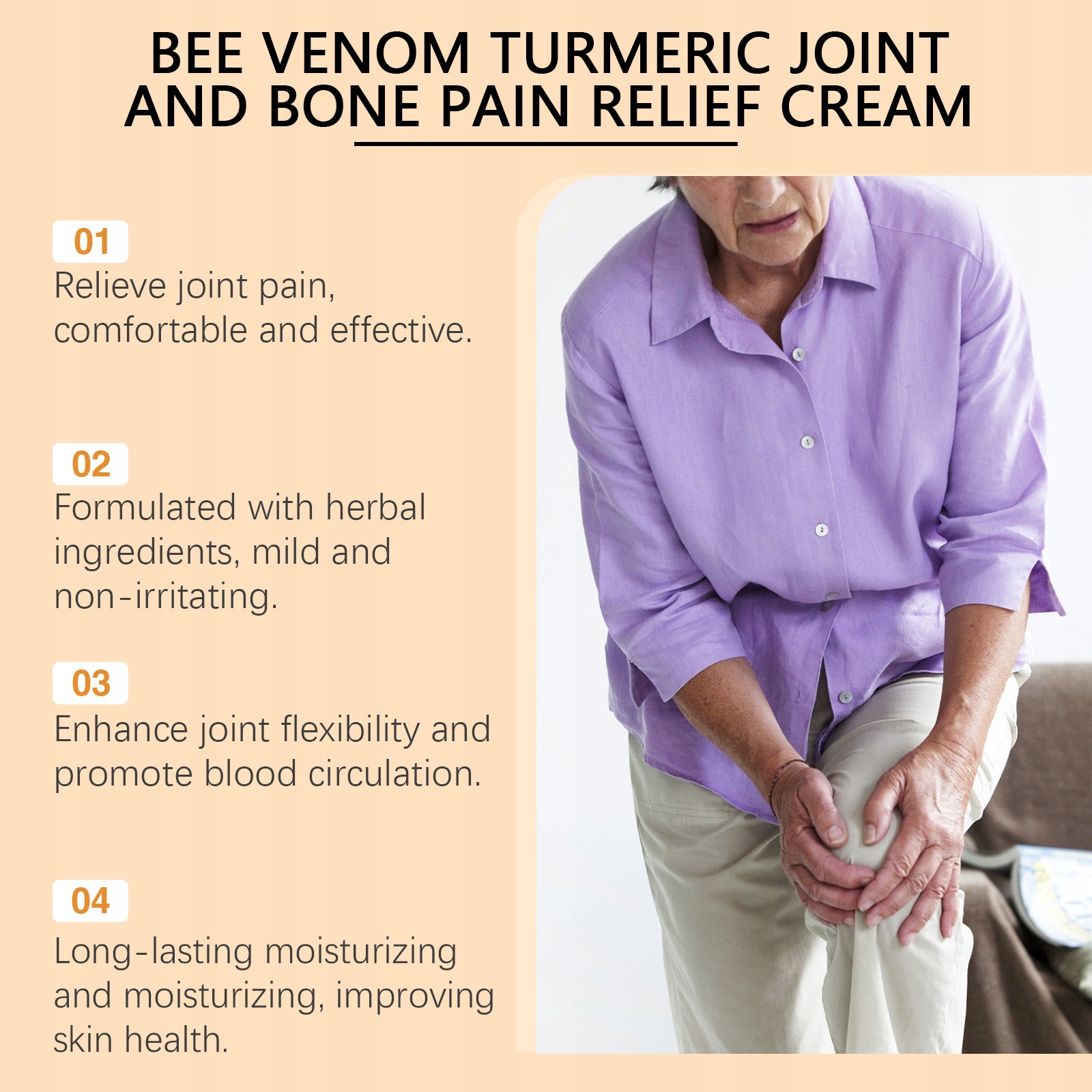 Особливо підходить для людей похилого віку: З віком проблеми із суглобами стають більш поширеними. Цей продукт є ніжним і не подразнює, спеціально розроблений для полегшення загального дискомфорту в суглобах у людей похилого віку, допомагаючи їм справлятися з повсякденними справами з легкістю. ♥