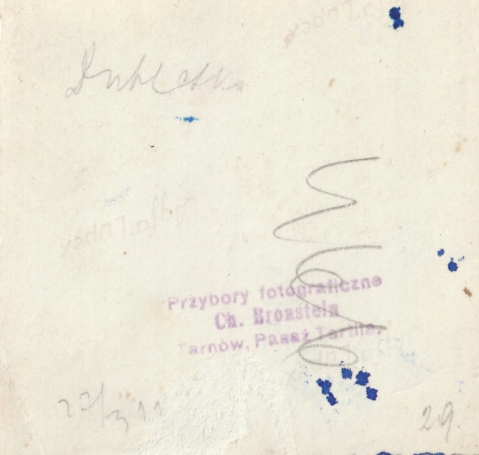 Невелика фотографія (6,5 см х 6 см) Хаскіля Бронштейна, фотографа з Тарнова, власника студії Fotografika в Тарнові.