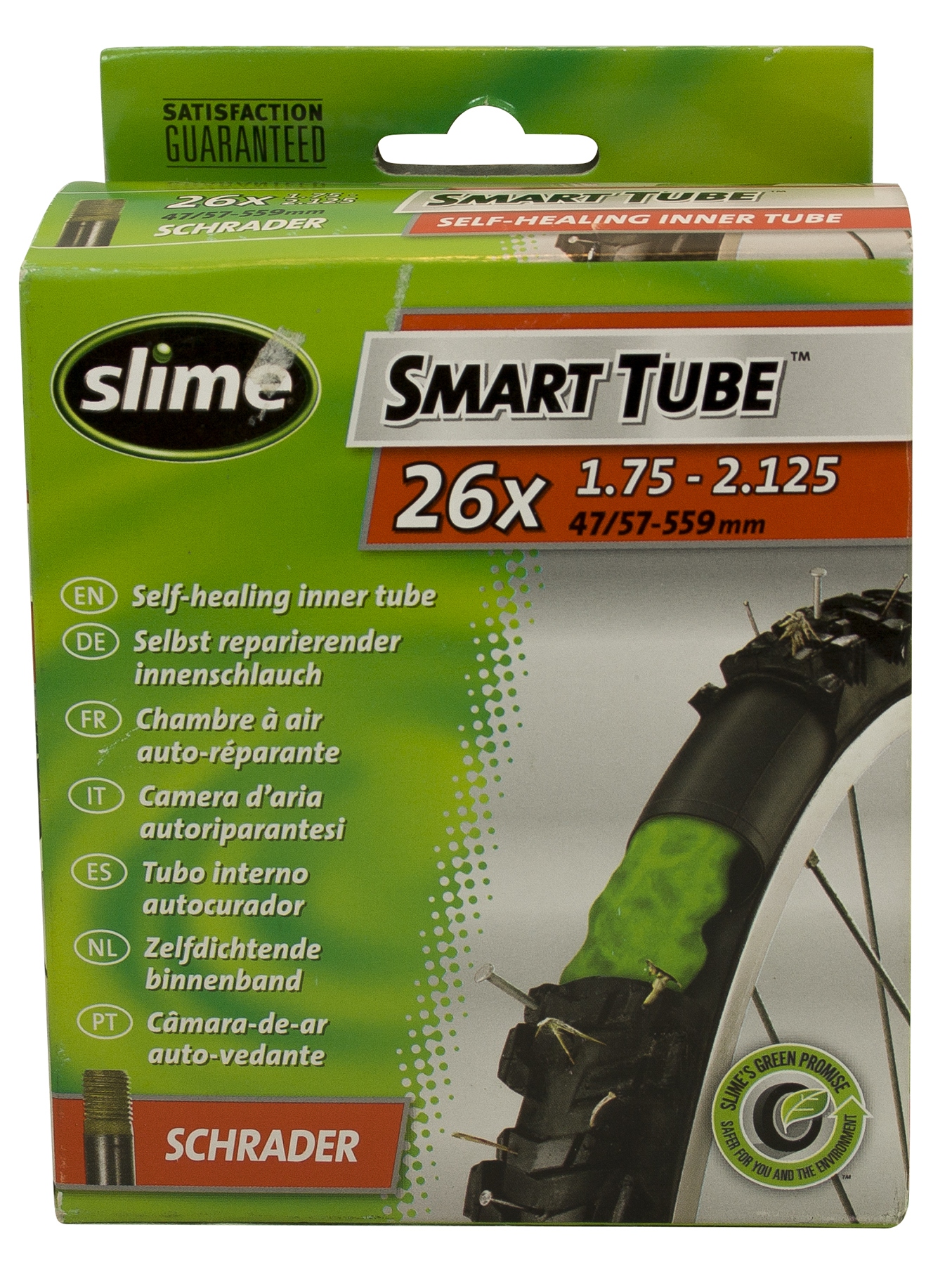 Slime Smart Tube з герметиком, який у разі проколу повертається під тиском до місця виходу повітря. Це поєднання високоякісної міцної внутрішньої камери з герметиком Slime з технологією Fibro-Seal, який після проколу внутрішньої труби (до 3 мм) одразу знаходить місце виходу повітря та герметизує її. Працює за екстремальних температур: дуже низька температура замерзання -16⁰C з верхньою межею нагріву 82°C.