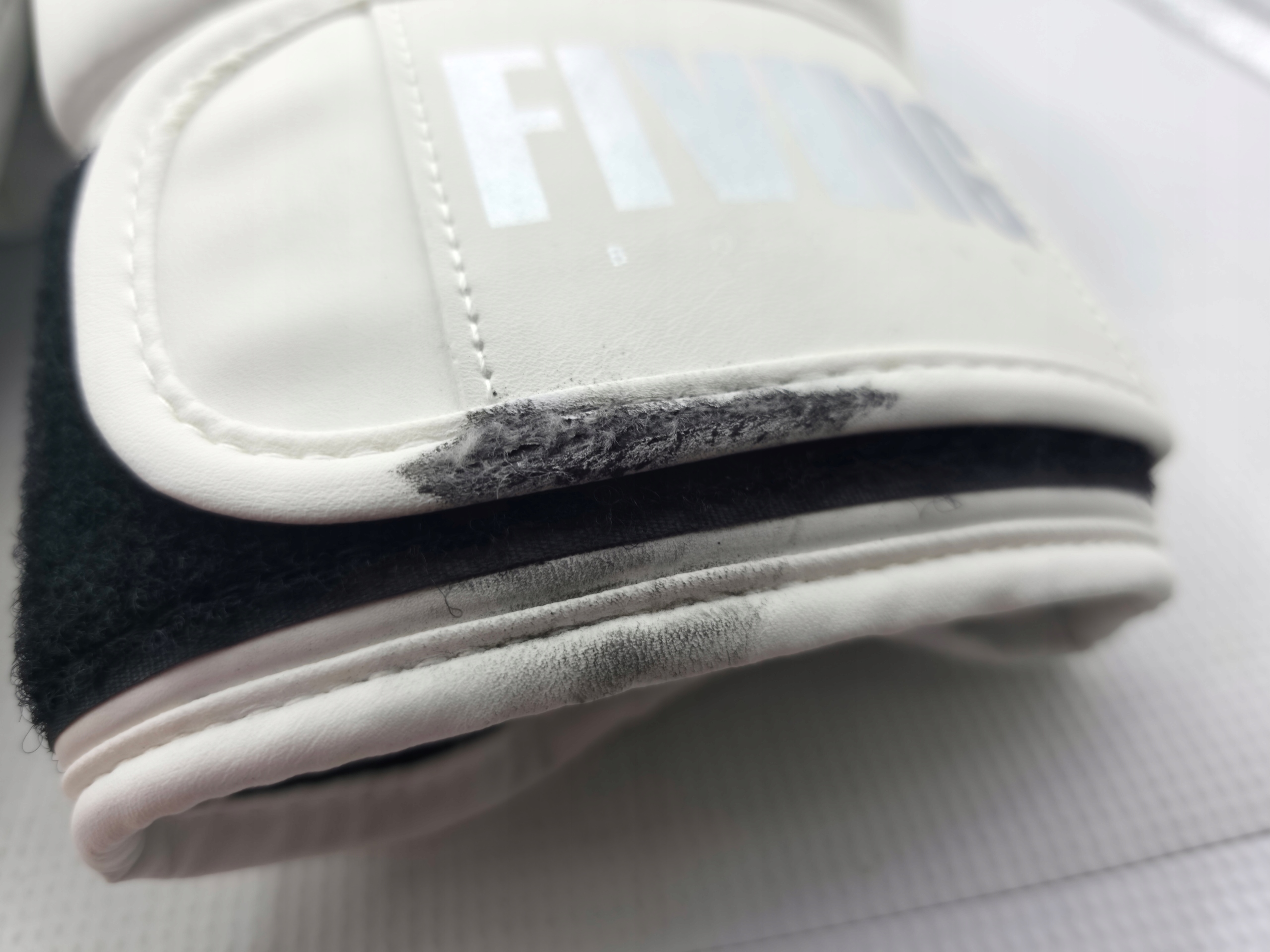 ONE GLOVE HAS DIRT AND WEAR