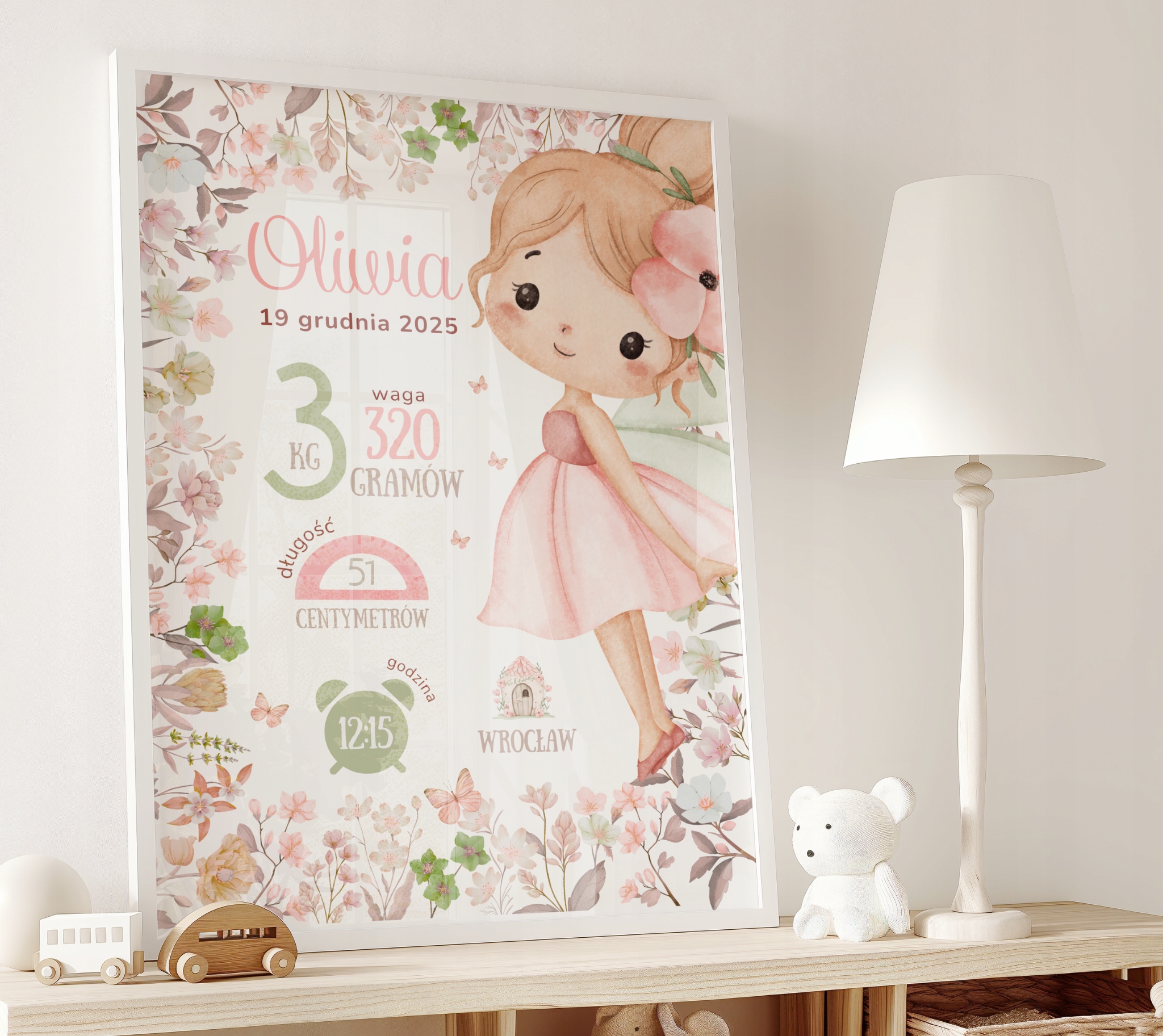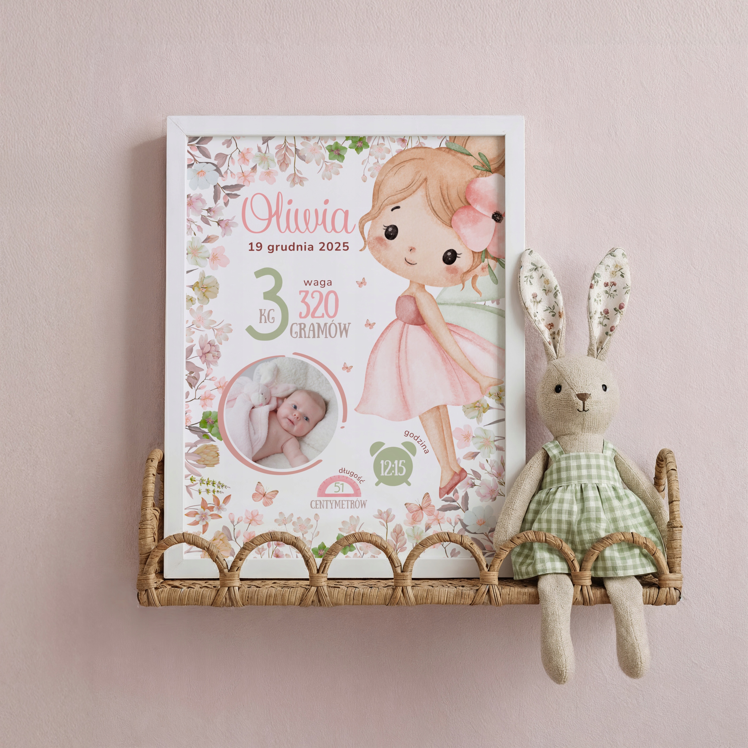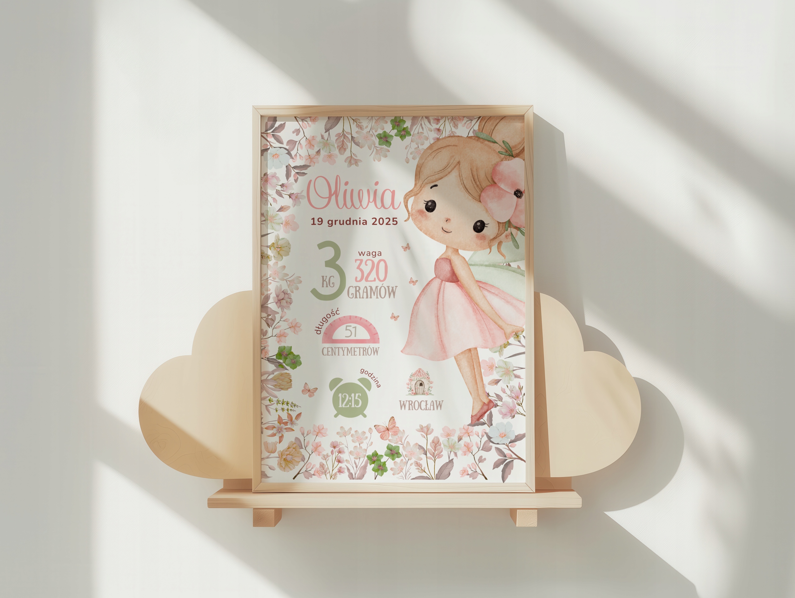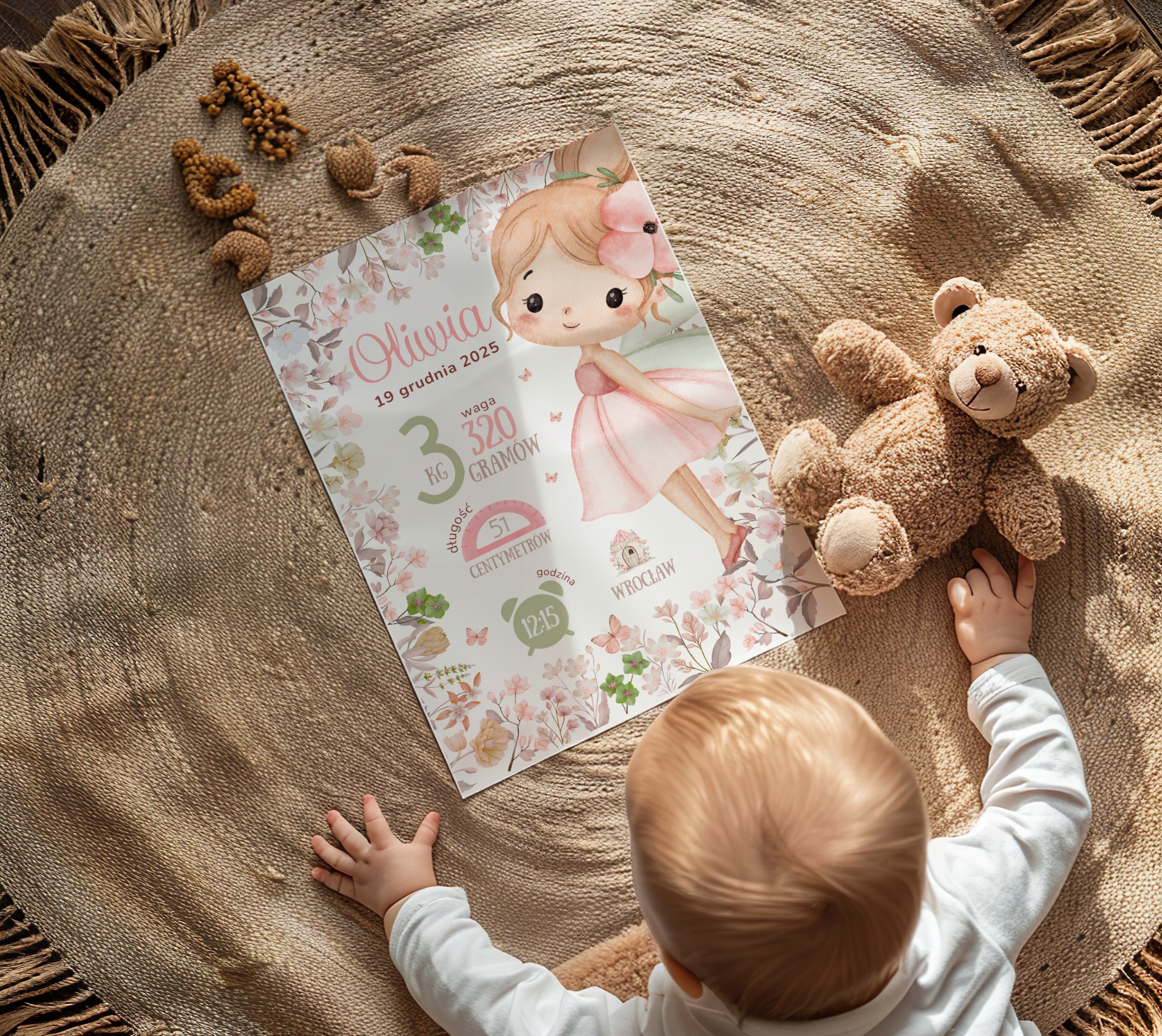 ЗАБЕЗПЕЧЕННЯ В РАМЦІ для дівчинки. ПОДАРУНОК НА ХРЕСТИНИ ДІВЧИНКИ народження однорічки А4