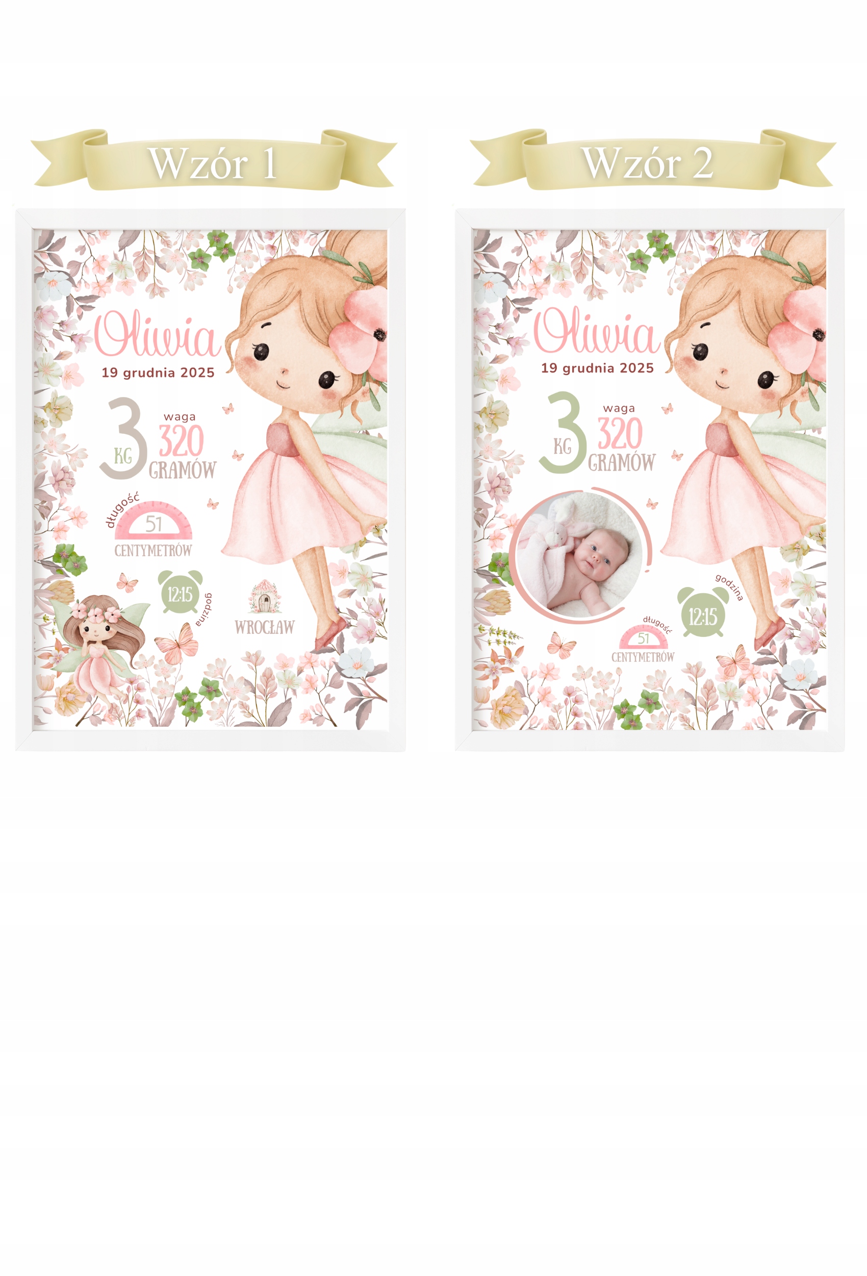 Свідоцтво про народження для дівчинки З ФОТО І БЕЗ + рамка IKEA FISKBO A4 (біла)