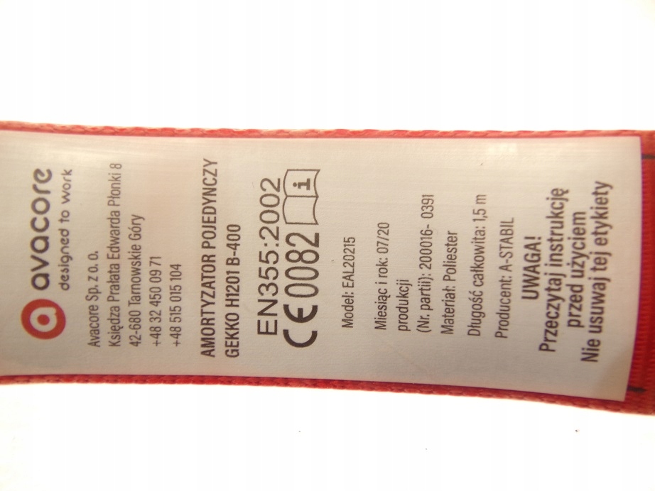 - Є елементом системи зупинки падіння, що відповідає стандарту EN 355:2002.