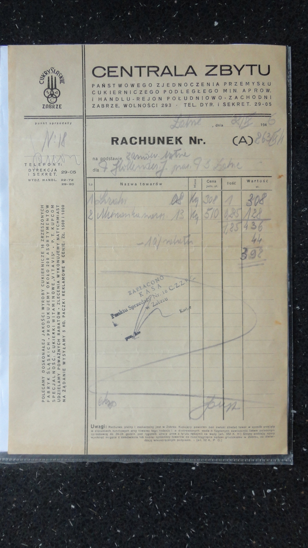 ZABRZE CUKRY SLASKIE ПРОДАЖНИЙ ШТАБ-КВАРТИРА RACHUNEK 1946