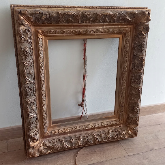 Предметом аукціону є дерев'яна рама 19 століття з ліпниною. Розмір рами 74х66 см. Розміри всередині рамки 44,5 х 36,5 см