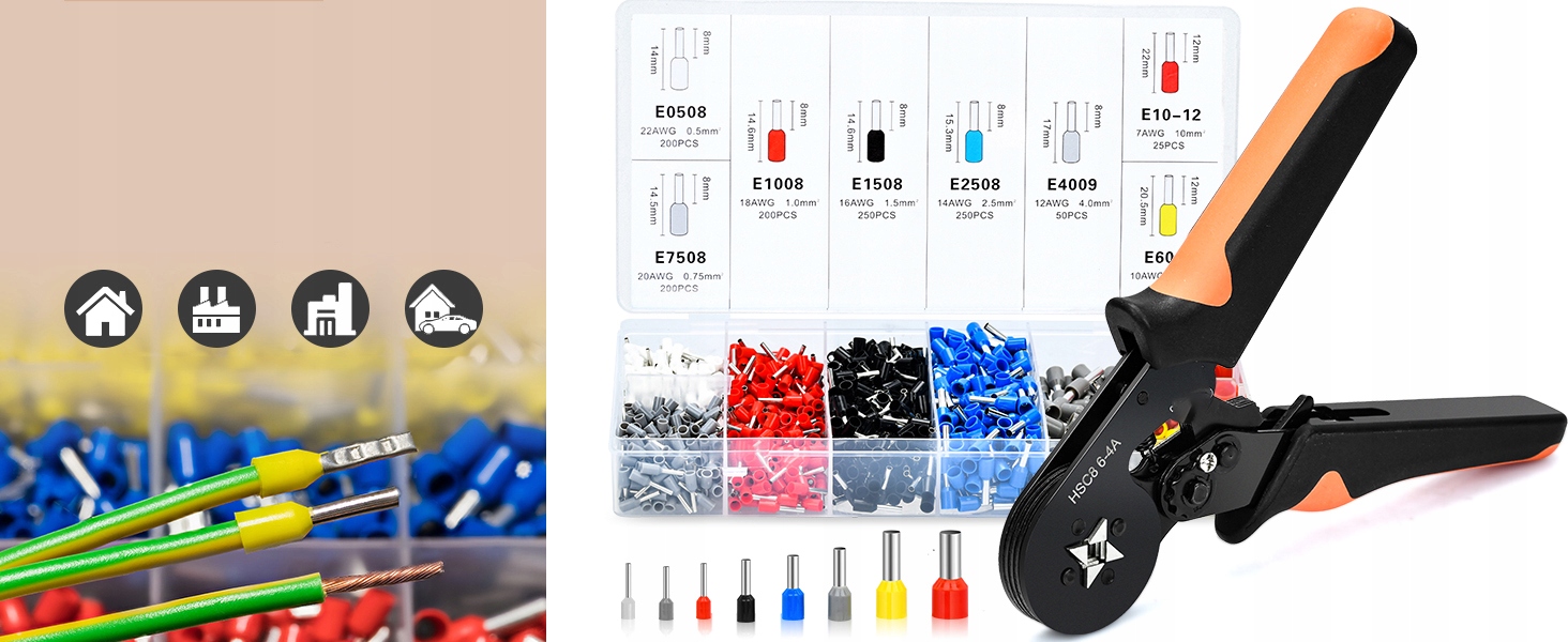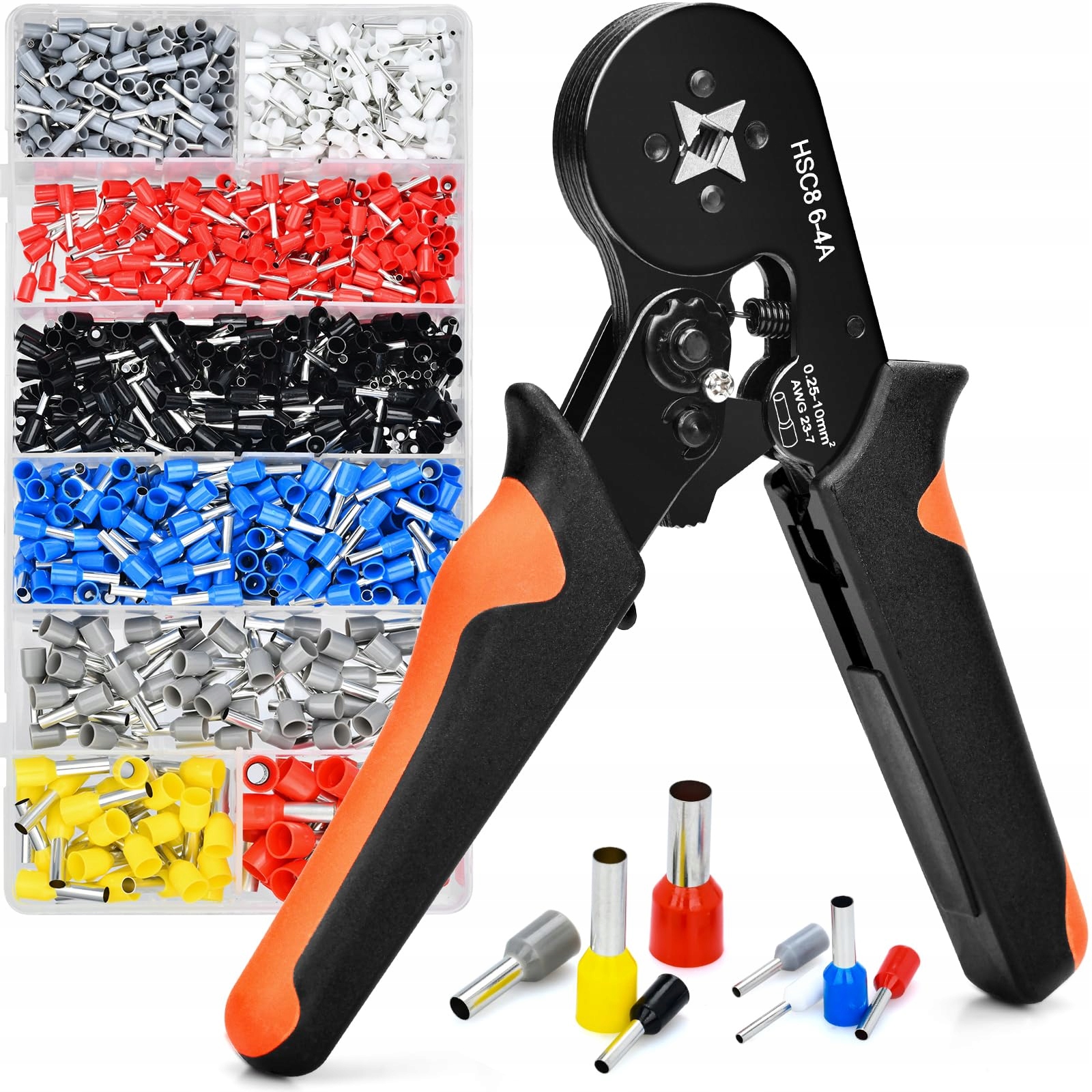 ZACISKARKA PRASKA DO KONEKTORÓW KOŃCÓWEK KABLI PRZEWODÓW + 1200 TULEJEK