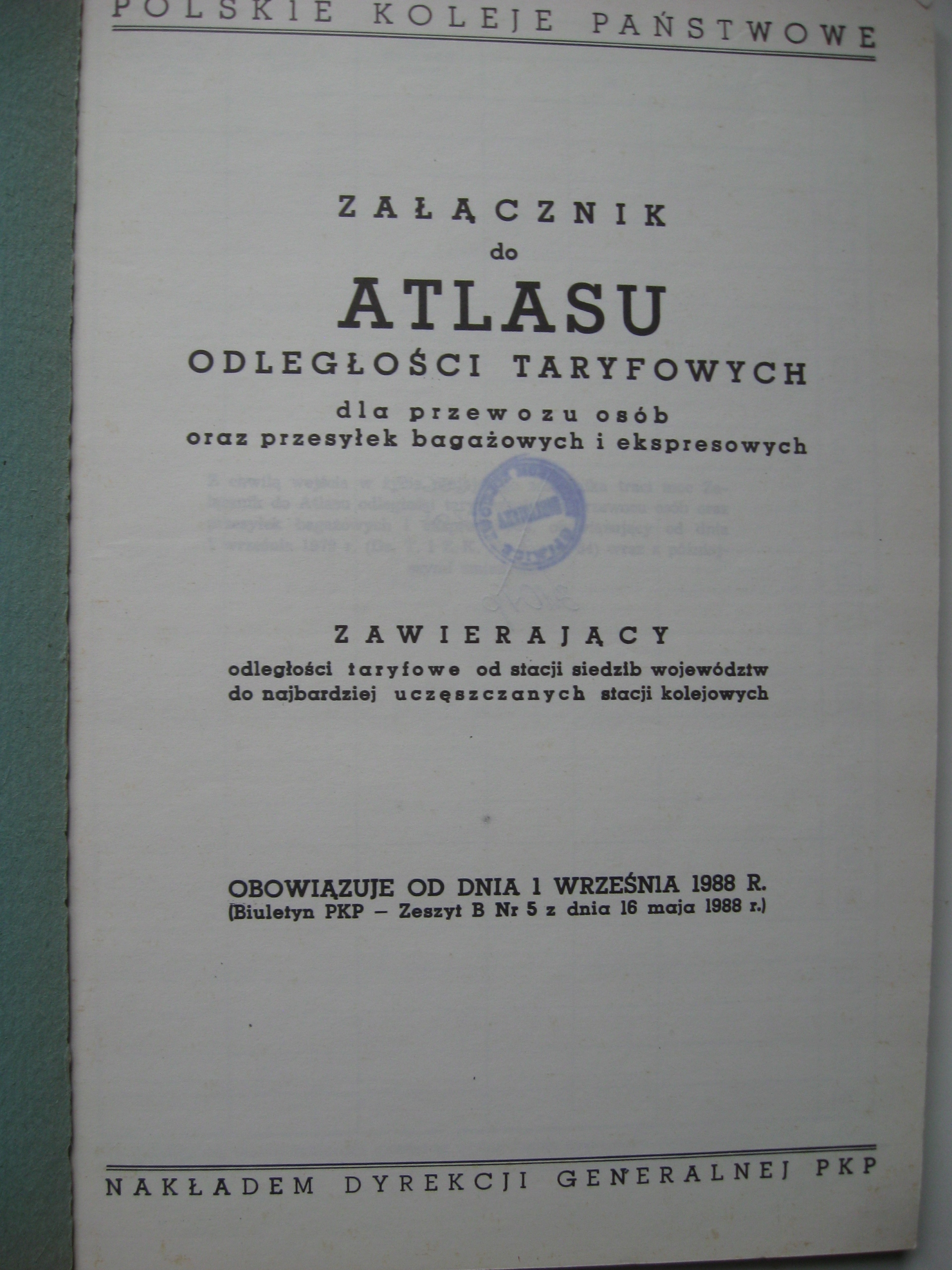 Załącznik do atlasu ODLEGŁOŚCI TARYFOWYCH dla przewozu osób PKP