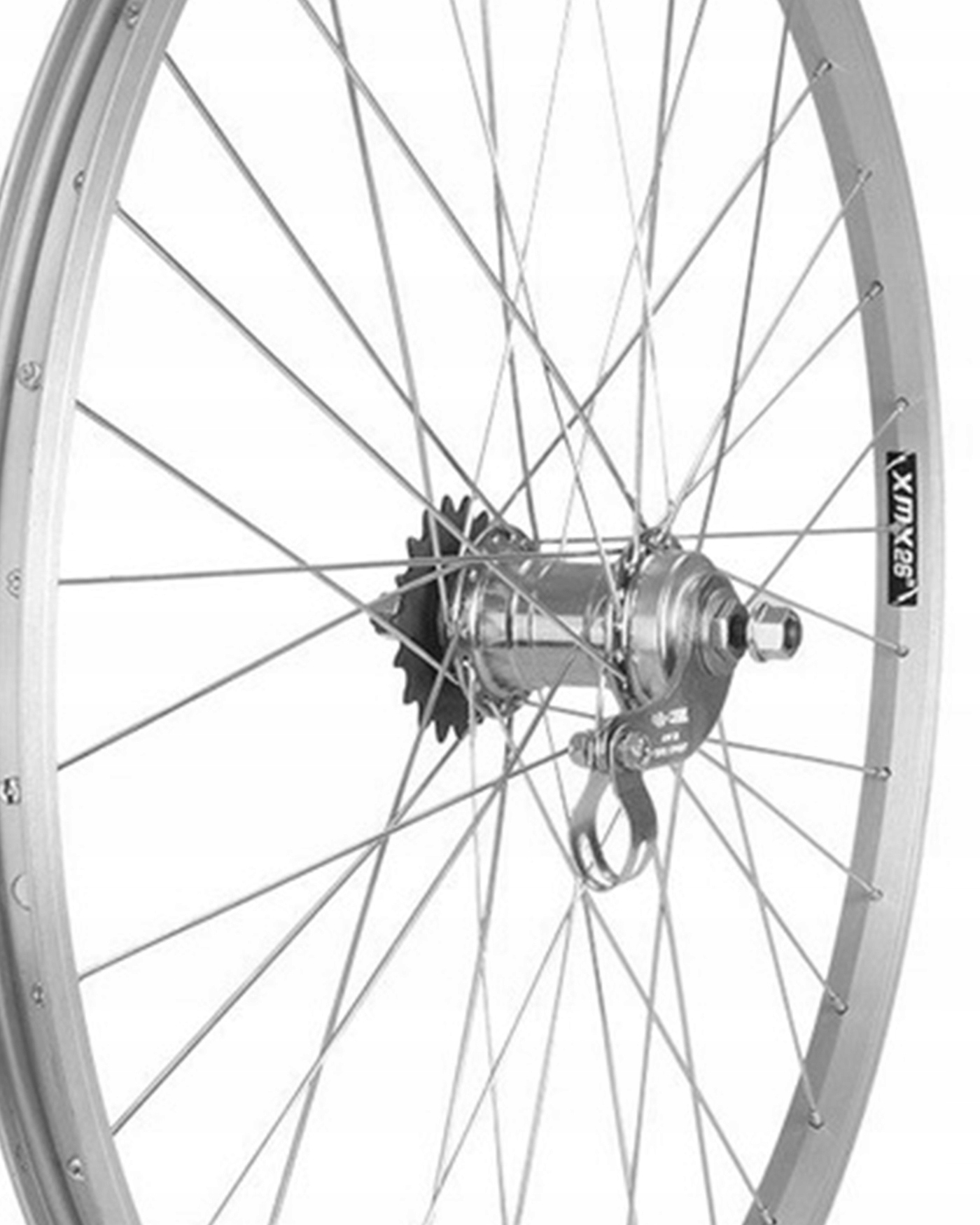 26" заднє велосипедне колесо, призначене для міських велосипедів. Він виготовлений з алюмінієвого обода, самофіксуючої втулки VELOSTEEL і 36 сталевих спиць. Ободок має ширину 26 мм зовні та 21 мм всередині. і висотою 16,2 мм. Втулка оснащена віссю діаметром 9,5 мм. У комплект також входить зірочка 20T з монтажними аксесуарами. Велосипедне колесо дуже міцне, жорстке і міцне. Це гарантує безпечну та комфортну їзду для велосипедистів. Незалежно від покриття забезпечує плавну і безвідмовну роботу всієї ходової частини.