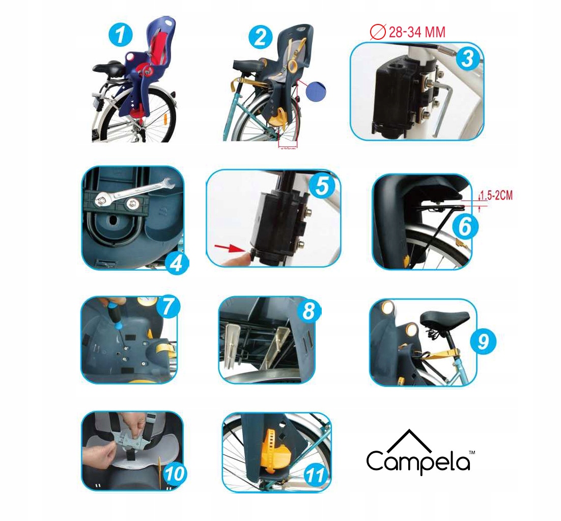 - Сидіння на велосипеді може бути прикріплене до велосипеда або рамки магістралі. Салова. MM, регулювання відстані сидіння