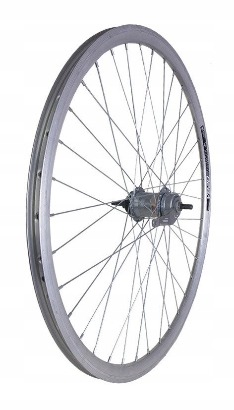26" заднє велосипедне колесо з аксесуарами. Колесо складається з 26-дюймового алюмінієвого конічного обода, 3-швидкісної втулки SHIMANO NEXUS з внутрішнім гальмом SG3C41 і 36 оцинкованих спиць, що з'єднують ці два елементи. Двостінний обід, сумісний з V-brake, забезпечує жорстке, дуже міцне колесо, а інші компоненти гарантують плавну та комфортну їзду. Колесо також характеризується довговічністю, високою якістю виготовлення і в той же час надзвичайною легкістю. Він дуже добре справляється з нерівностями та нерівною місцевістю. У набір також входять аксесуари для концентратора.