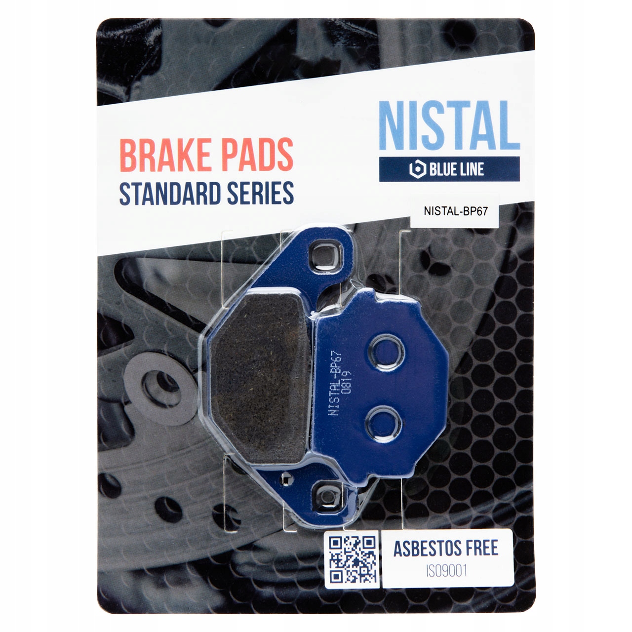 Гальмівні колодки NISTAL - це безпечний і довговічний продукт із відмінним співвідношенням ціни та якості. Накладка являє собою органічний фрикційний матеріал, збагачений добавками, що покращують гальмування. Колодки з синьої серії BLUE LINE, завдяки вмісту 20% міді, забезпечують хорошу тепловіддачу, не тягнуть і не скриплять при гальмуванні. Вони забезпечують м'який знос диска. Вони також добре працюватимуть на більш важких мотоциклах для розважальної їзди. Виготовлено відповідно до таких сертифікатів: ISO 9001:2008, ISO 14001:2004, OHSAS 18001:2007.