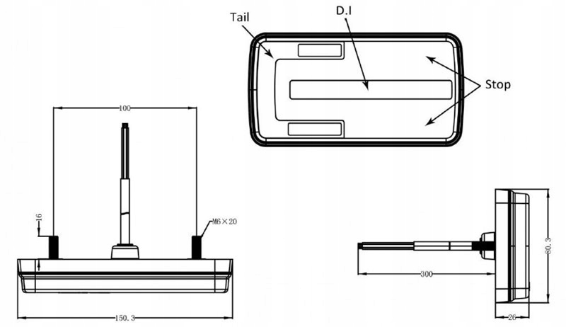 4-функціональний світлодіодний задні ліхтарі з габаритними вогнями, СТОП-сигналом, динамічним (плаваючим) покажчиком повороту, РЕФЛЕКТОРОМ, кабелем 30 см.