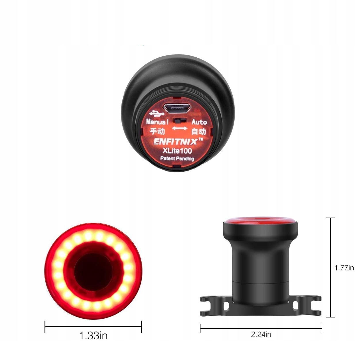 Автоматичний водонепроникний задні ліхтарі для велосипеда Enfitnix XLite100 із датчиком руху та сутінків + монтажний комплект