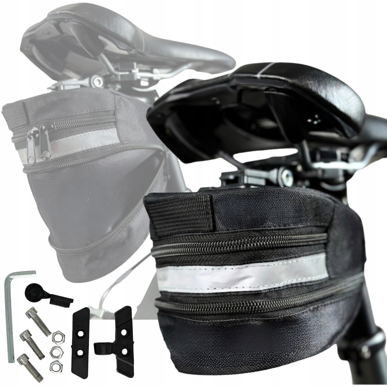 безпеки - на задній частині сумки, сумка має відображення, завдяки якому після темряви - Ми прикріплюємо сумку з гнучким ремінцем з регульованим та швидким з'єднанням. Завдяки цьому сумка підходить до всіх типів велосипеда, а збірка триває кілька секунд.