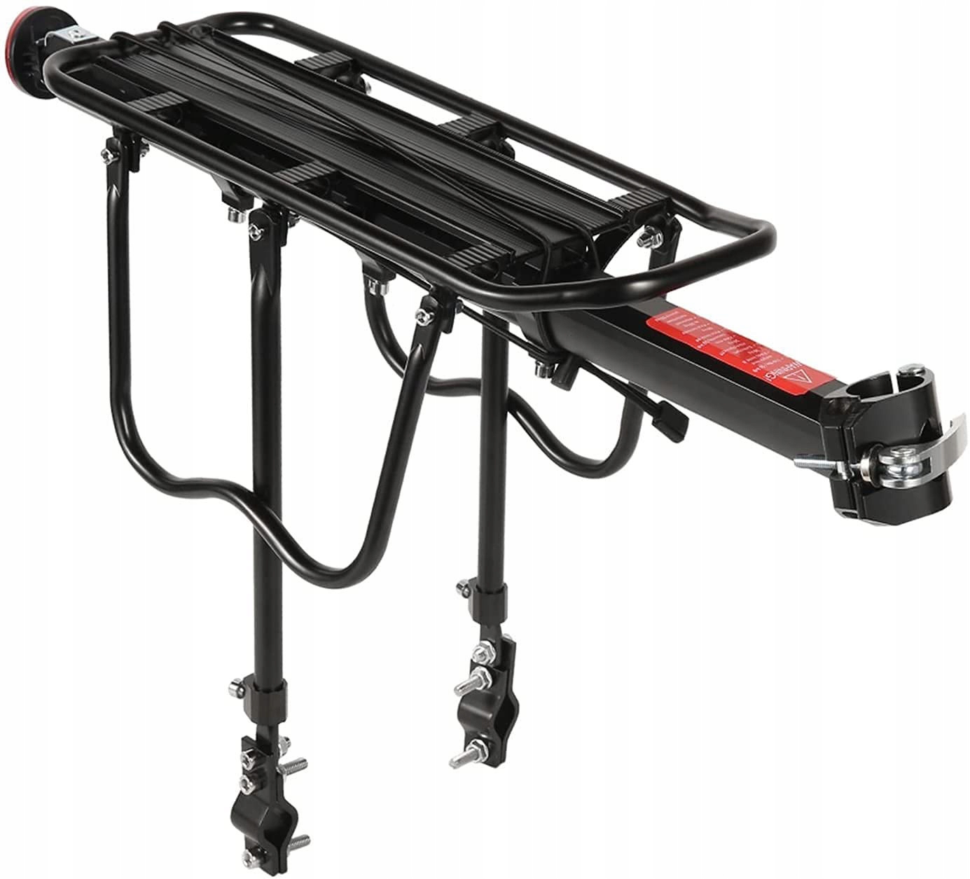 Високоякісна алюмінієва універсальна стоянка для велосипеда з максимальним навантаженням 50 кг. Міцно кріпиться до підсідельної труби та до задньої частини рами за допомогою швидкознімного затискача (швидке встановлення самої платформи до підсідельної труби) та гвинтів, що забезпечує стабільну підтримку.