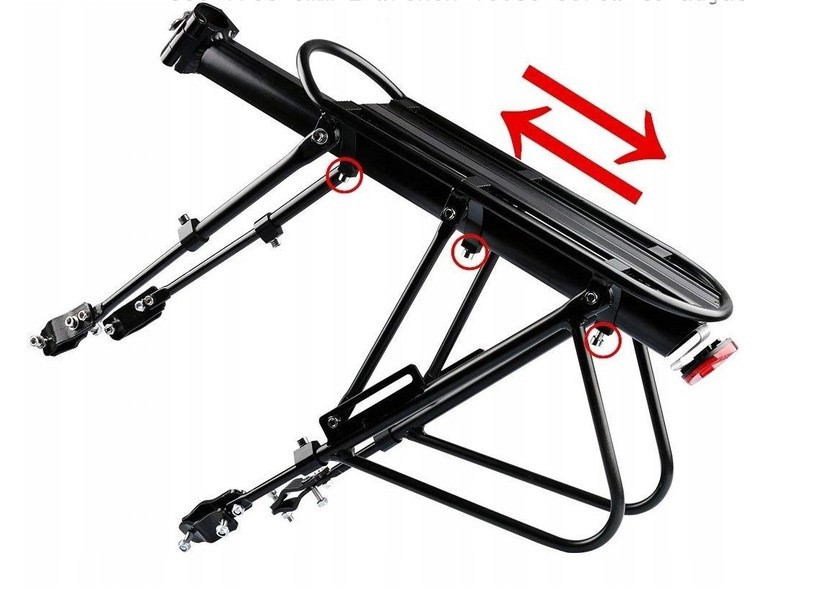 - міцна конструкція: Зроблено з світлого та міцного алюмінію, цей багажник здатний нести вагу до 110 кг, що робить його ідеальним для транспортування великих паньє, кошиків, велосипедного сидіння для дитини або важкого багажу.