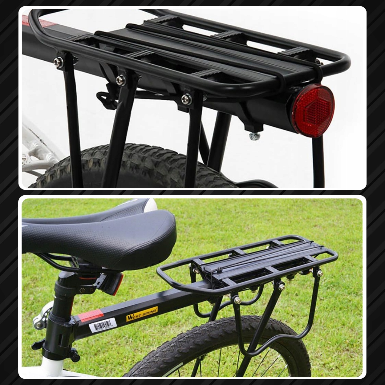 Міцний і легкий багажник для велосипеда з алюмінію, вантажопідйомністю до 50 кг. Універсальний дизайн підходить для більшості велосипедів, забезпечуючи легке встановлення та елегантний вигляд.