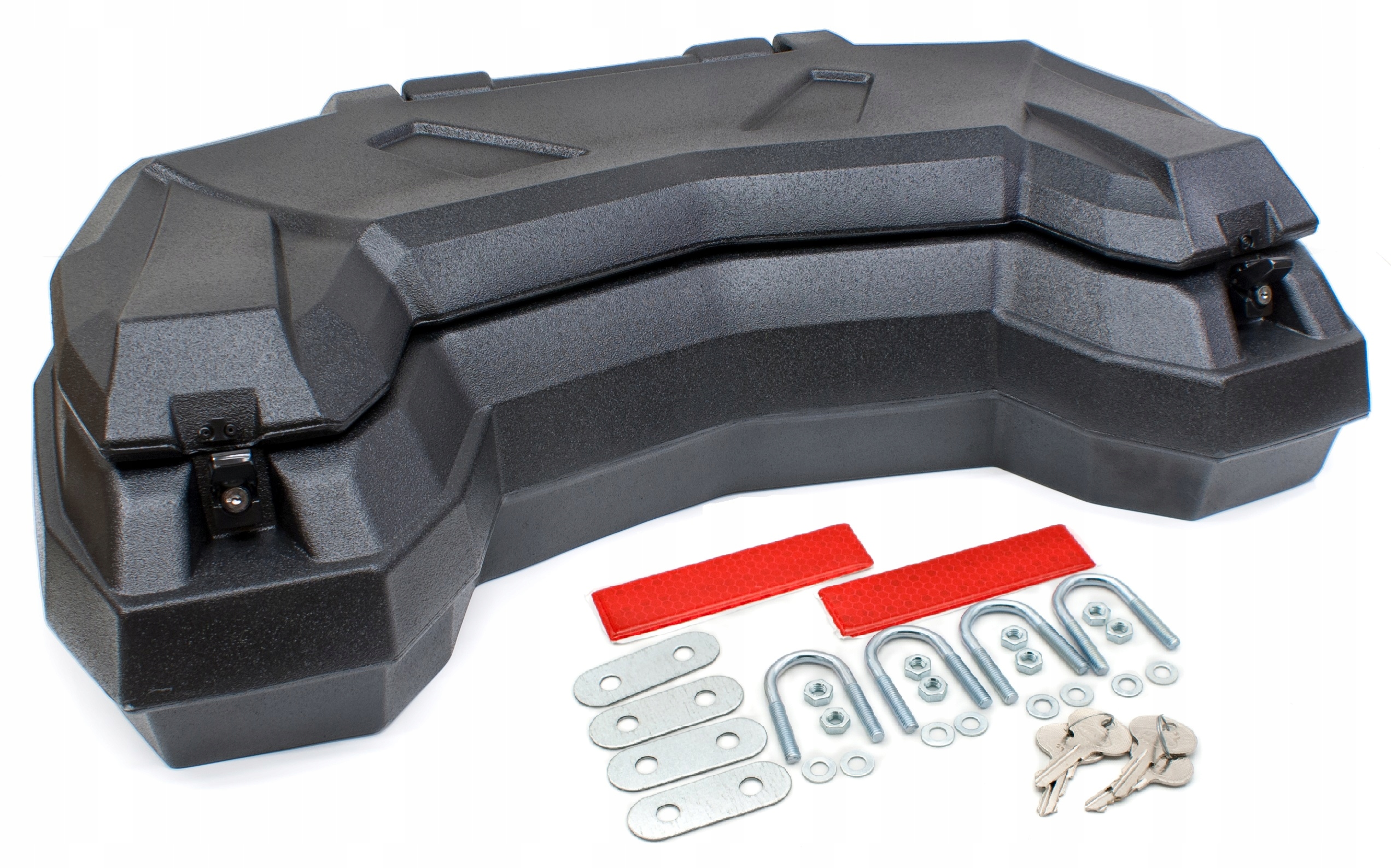 Бугажник — бюджетна пропозиція порівняно з дорожчими конкурентами на ринку, адресована людям, які не хочуть переплачувати за його покупку, а хочуть мати настільки ж функціональний і довговічний продукт. Ящик виготовлений з якісного поліетилену чорного кольору, що гарантує стійкість до механічних впливів і погодних умов. Корпус чохла має дуже сучасний і агресивний зовнішній вигляд у вигляді різноманітних аеродинамічних вирізів, завдяки чому він ідеально підходить до останніх моделей квадроциклів на ринку. Клапан, закріплений спеціальною силіконовою прокладкою, закривається двома металевими зручними засувками, що забезпечує надійне кріплення під час руху, а все це можна закрити на ключ, щоб ви могли безпечно залишити автомобіль поза вашою присутністю. За бажанням ви можете наклеїти 2x червоні світловідбивачі на задню частину, які підвищать видимість контуру автомобіля вночі.