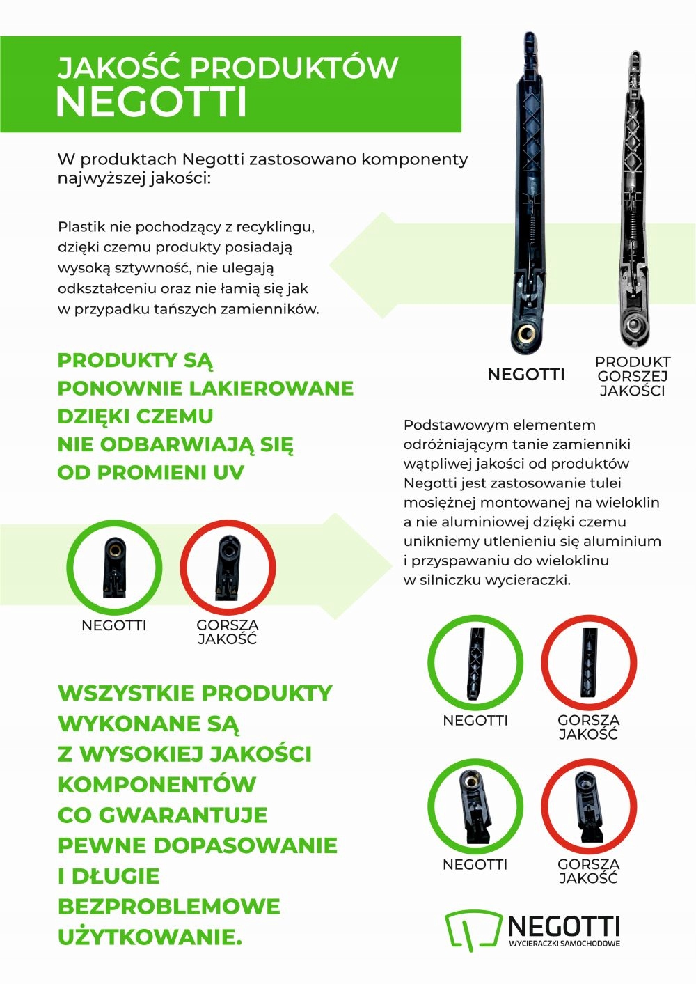 Набір включає повну задню руку склоочисника з ручкою . Це повний набір, присвячений певній моделі транспортного засобу. До продукту застосовується додатковий захисний шар, що запобігає старінню продукту.